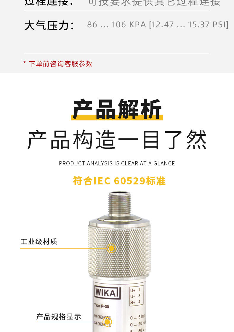 - Wide Compatibility: WIKA P-30 Type Pressure Transmitter, adaptable for various industrial applications requiring precise pressure measurement.