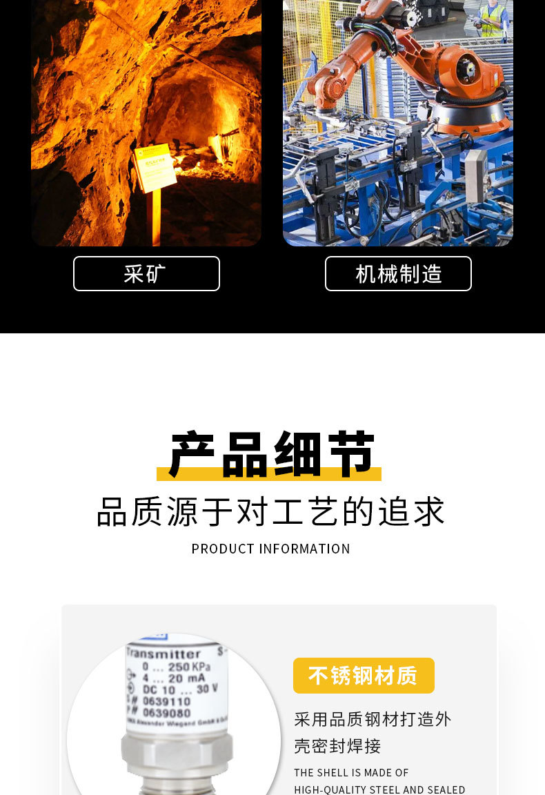- Key Specs & Performance: Features versatile measurement ranges (0-250 KPa and 0-1 MPa) and standard 4-20 mA output, compatible with DC 10-30V power supply for precise readings.