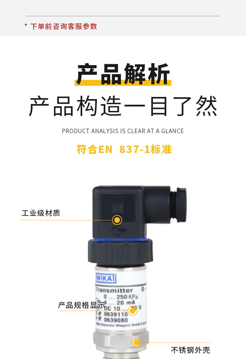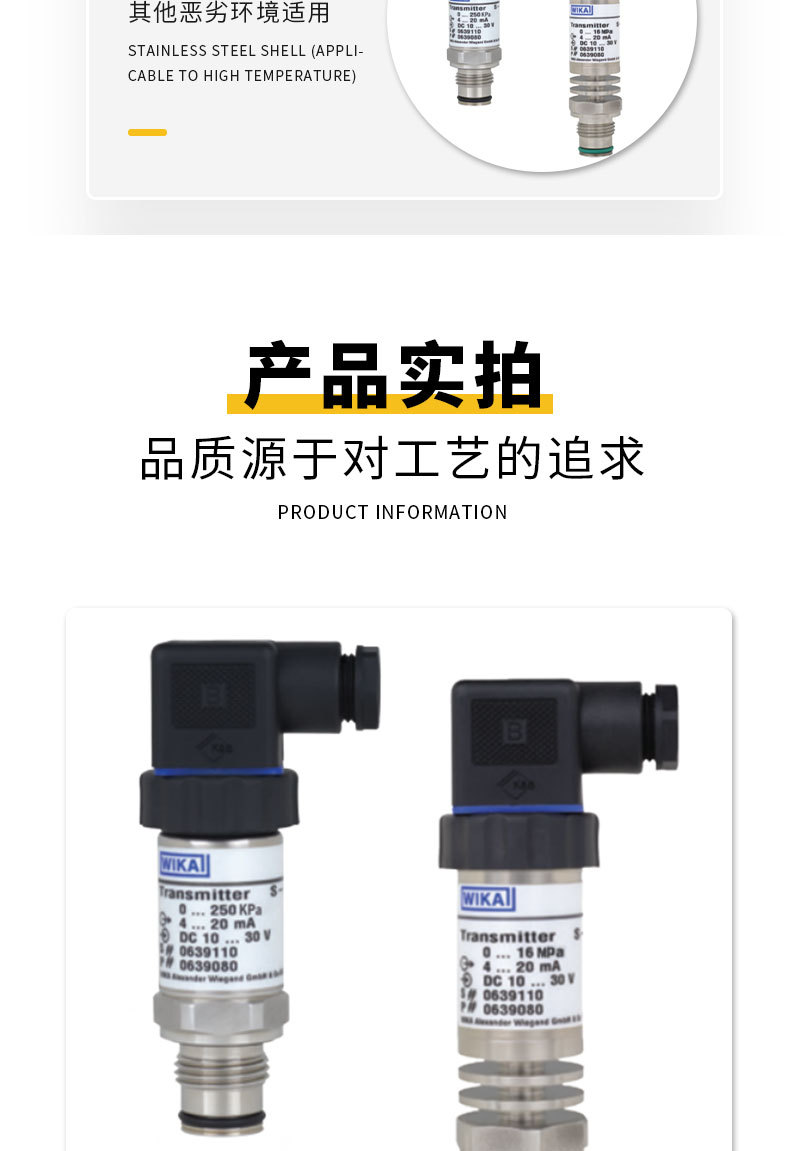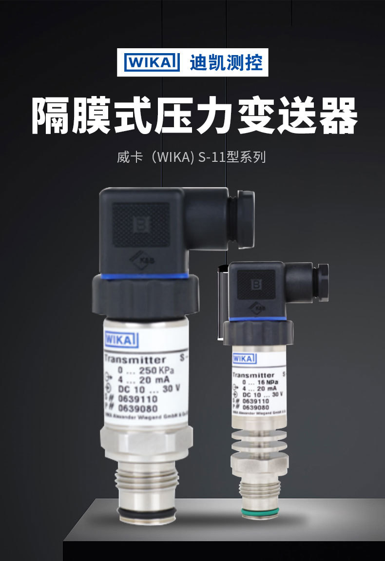 WIKA S-11 Type Diaphragm Pressure Transmitter (0-250 KPa / 0-1 MPa, 4-20 mA output, DC 10-30V) for Industrial Applications