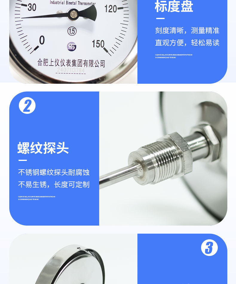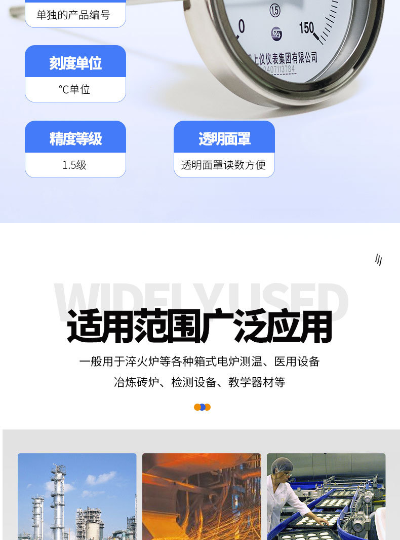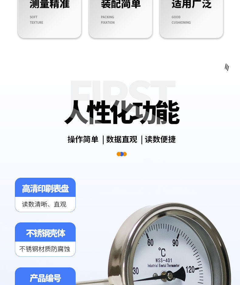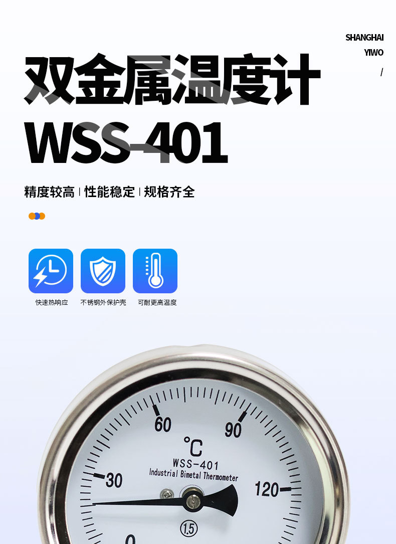 WSS-401 Bimetal Thermometer 150°C Industrial Oven Temperature Gauge with 304 Stainless Steel Probe for HVAC Systems