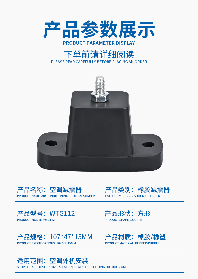 - What You Get: Includes one WTG112-A square head rubber shock absorber pad, providing a reliable and essential component for maintaining optimal performance of your air conditioner.