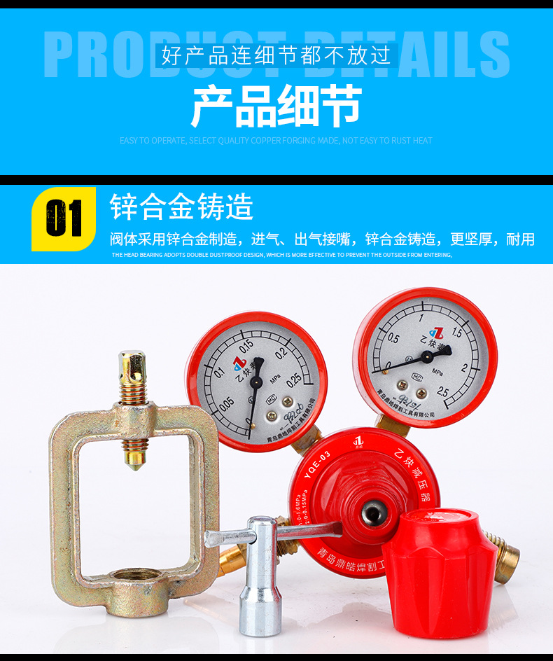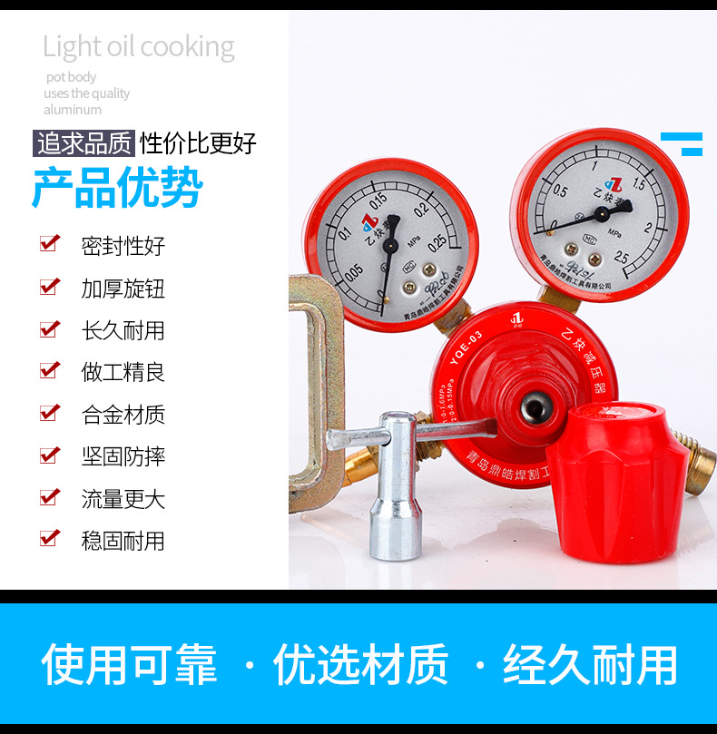 - Wide Compatibility: Specifically designed as an E-type acetylene pressure reducer, compatible with standard acetylene cylinders, ensuring precise gas flow control.