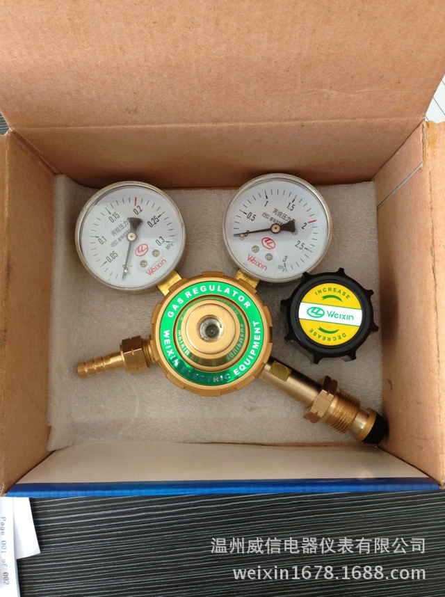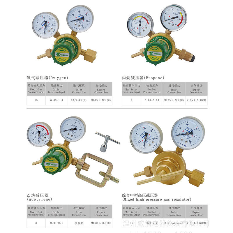 Weixin Full Copper Propane Pressure Reducer WX-YQW-02 Gas Regulator with Dual Gauges 0.16MPa and 2.5MPa for Industrial Propane