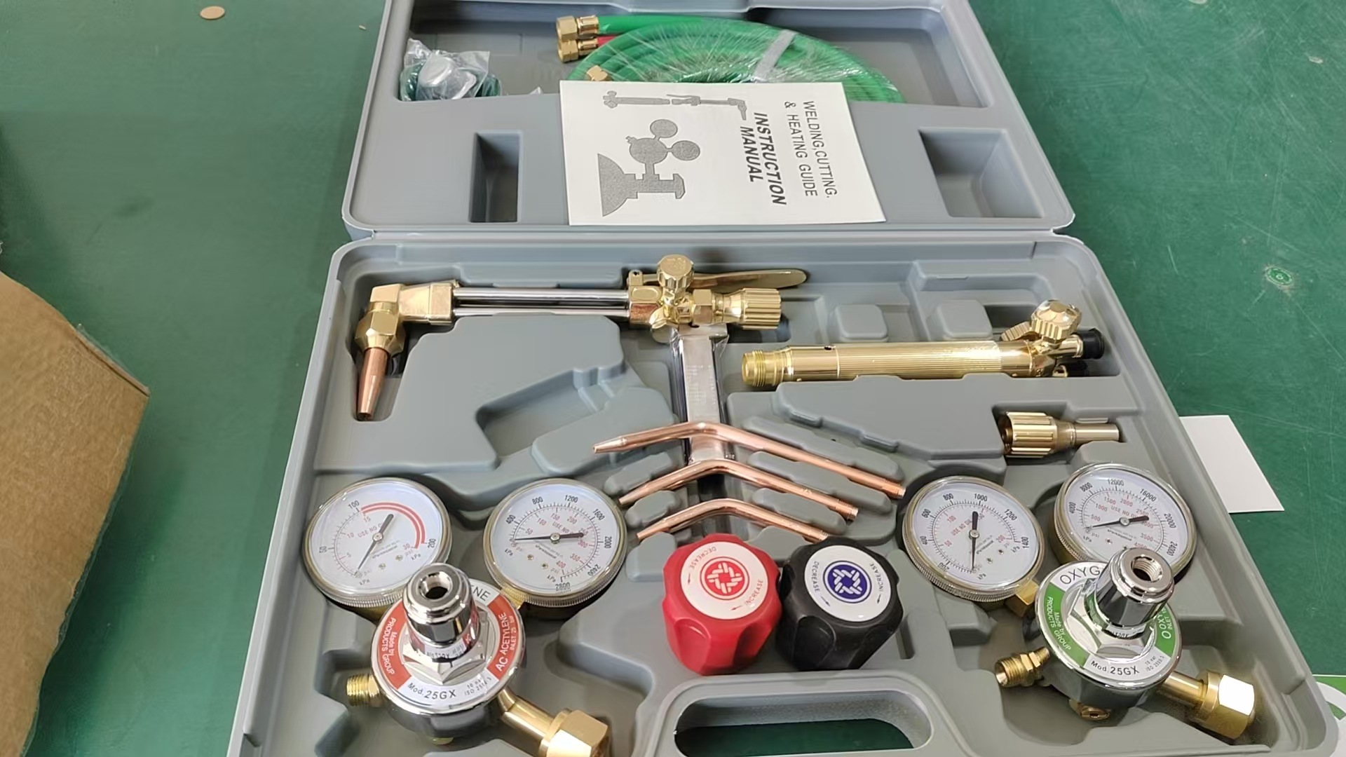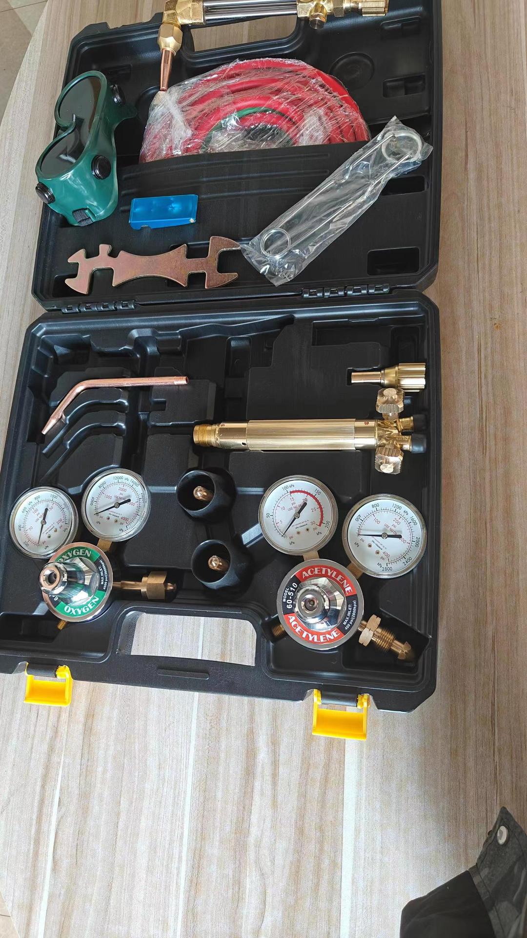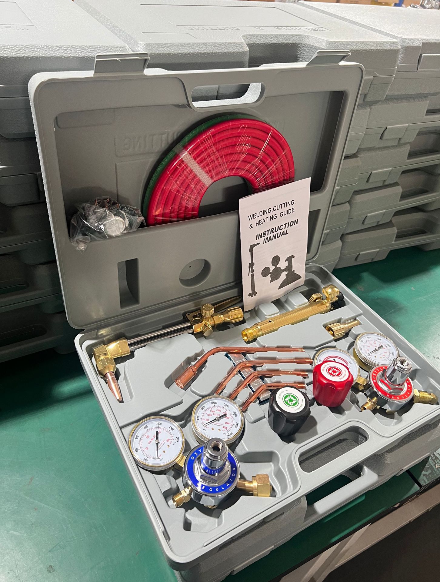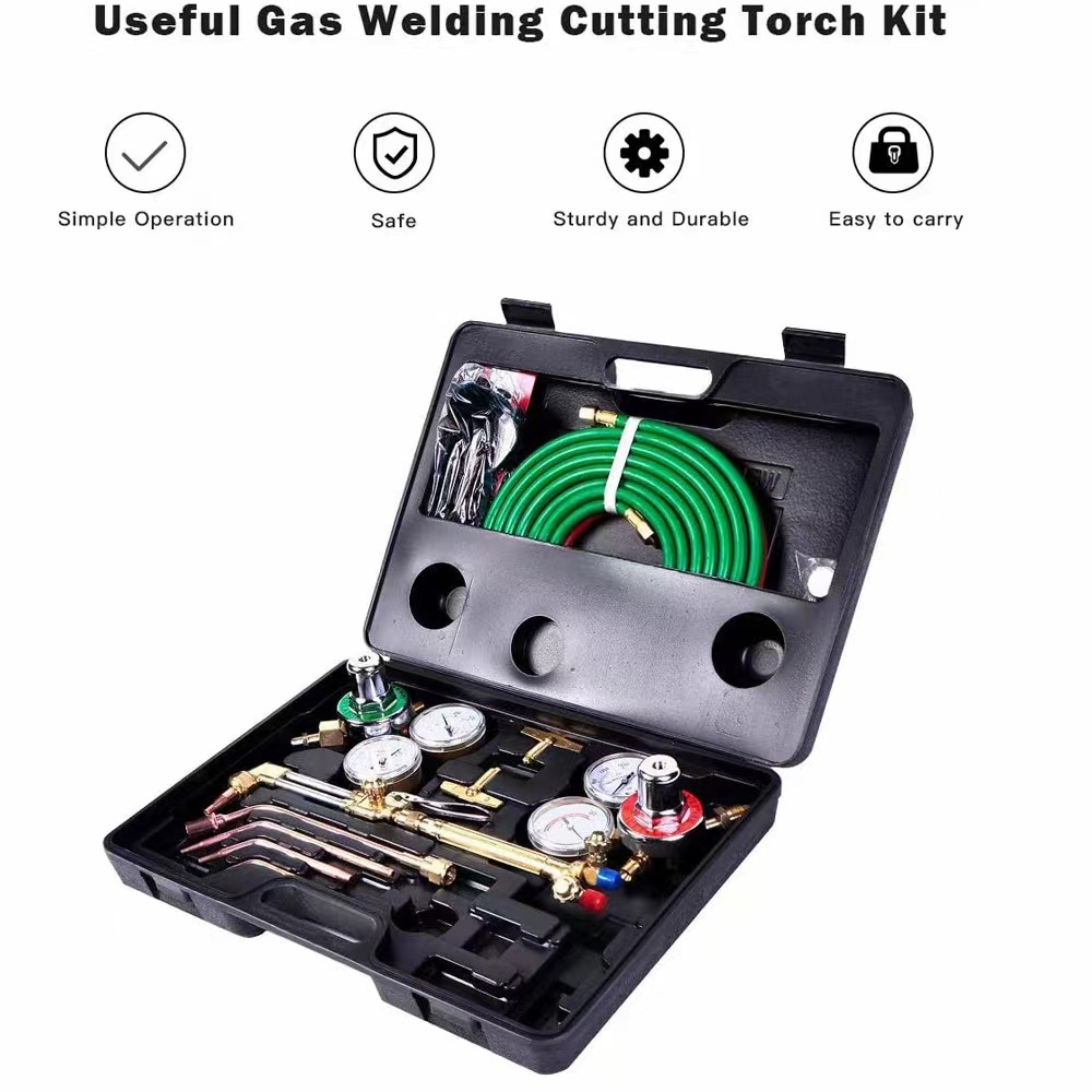 - What You Get: Comprehensive welding and cutting kit in a robust carrying case, including torch handle, cutting attachment, welding tips, pressure regulators, hoses, and goggles.