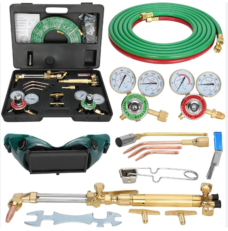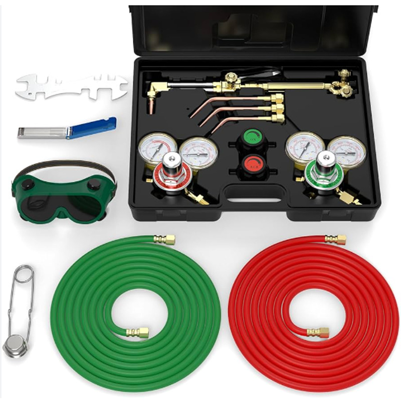 - Key Specs & Performance: Includes precise pressure gauges for oxygen, multiple cutting/welding tips, and durable green twin hoses for versatile and efficient operation.