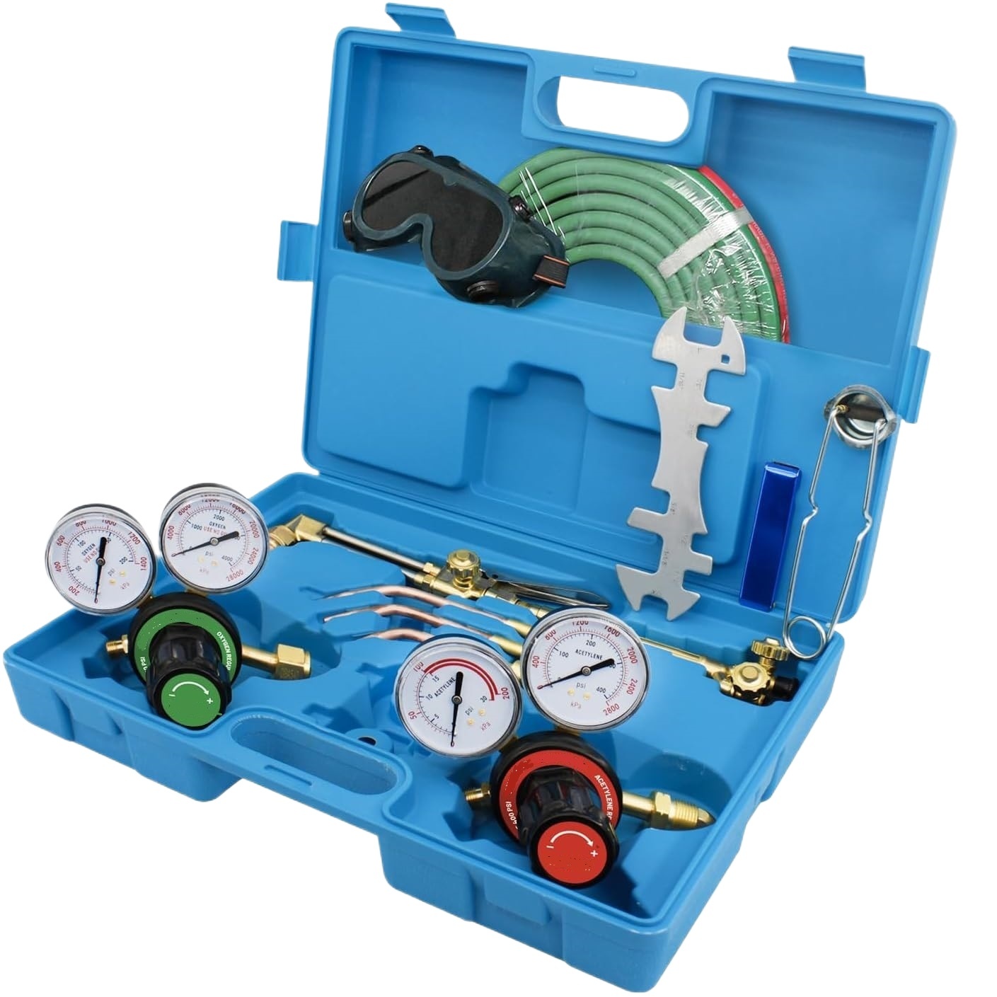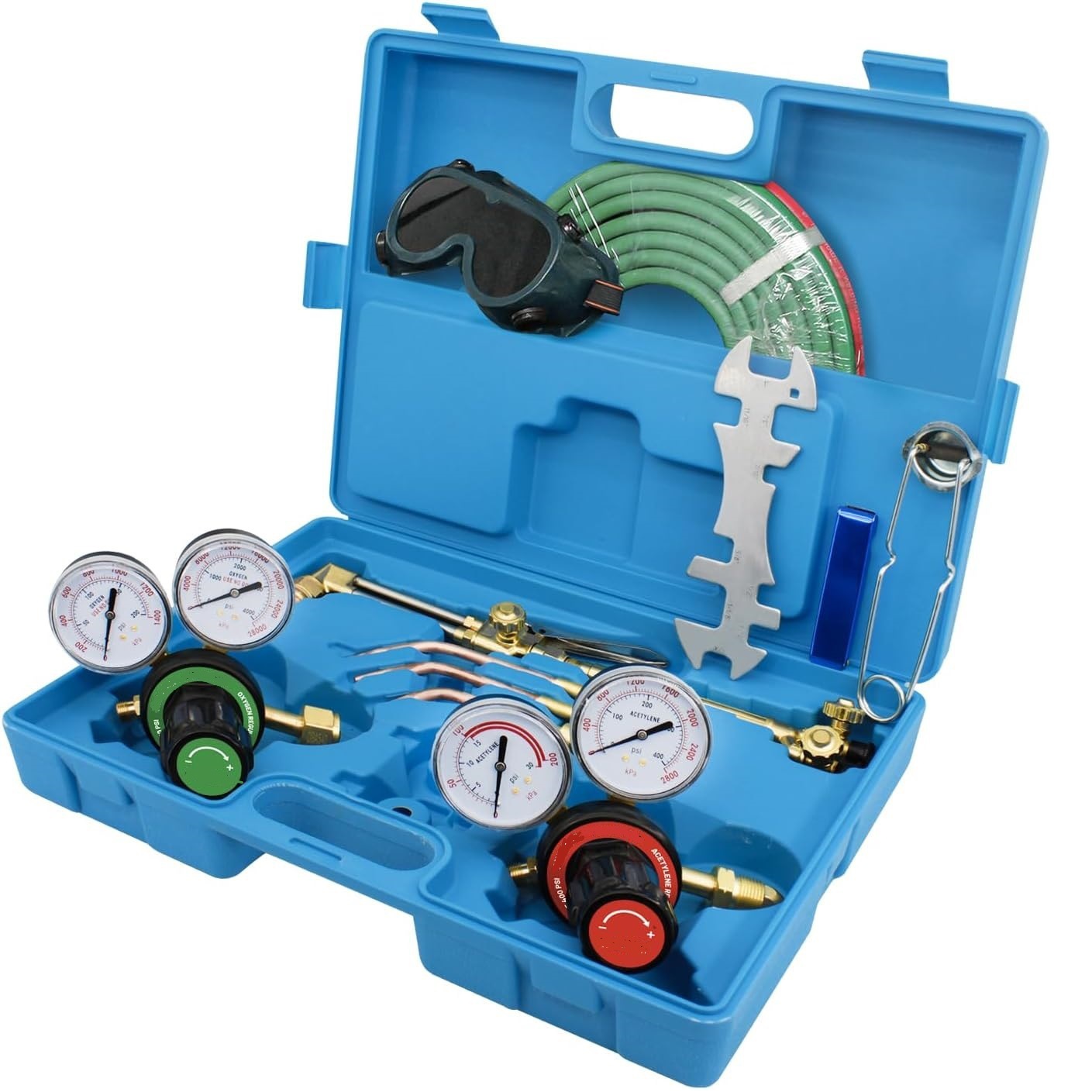 - Comprehensive Kit: Complete welding and cutting outfit including torch handle, cutting attachment, welding nozzles, regulators, and hoses, ready for immediate use.