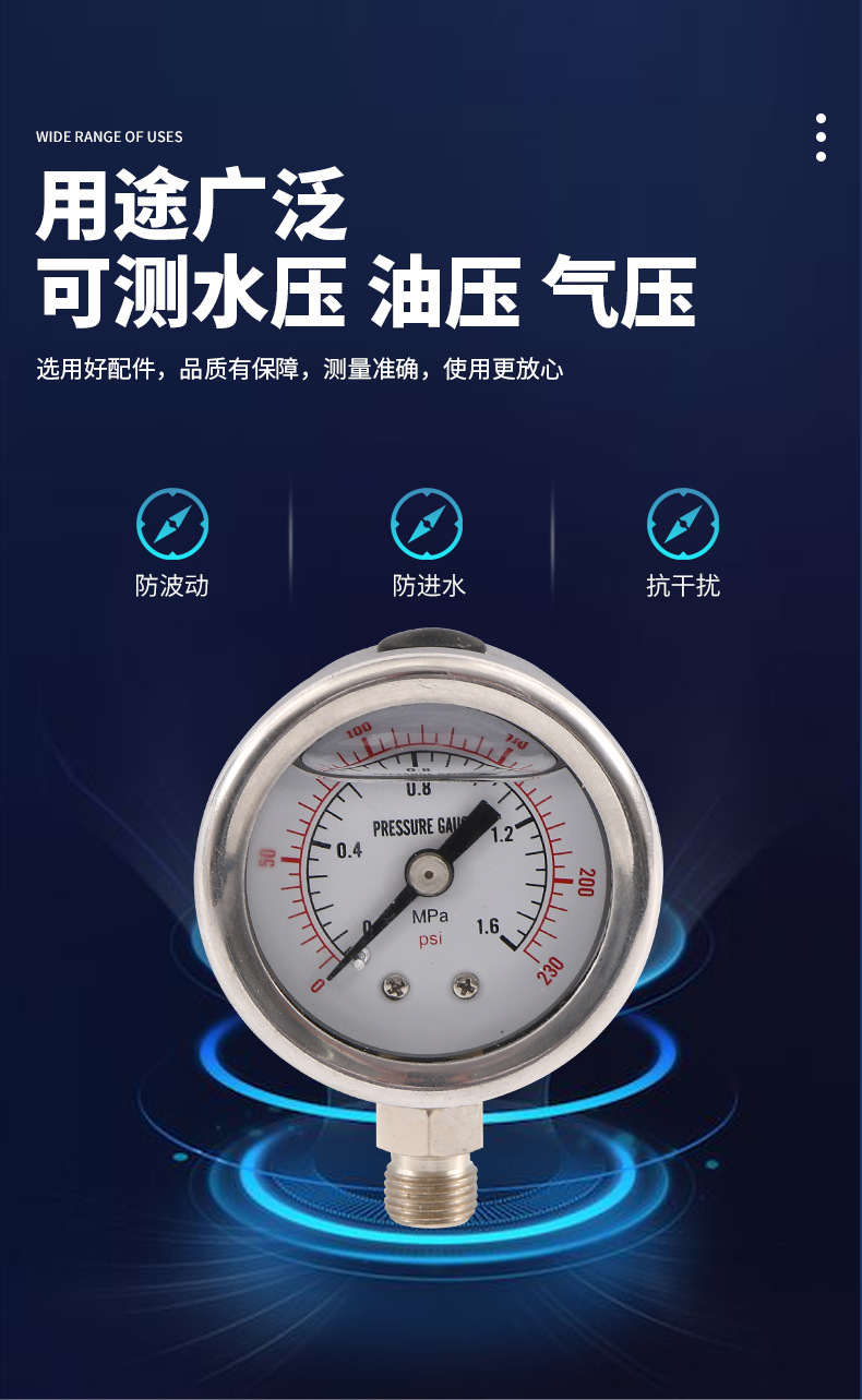 - Wide Compatibility: Y40L-A Pressure Gauge is suitable for various applications including water, oil, and air pressure measurement, ensuring broad utility across industries. Can replace standard vacuum and pressure gauges.