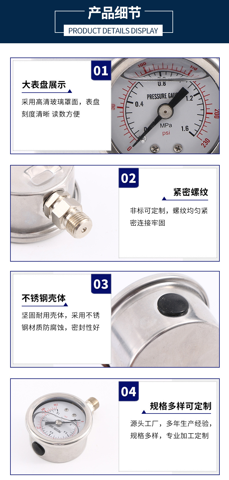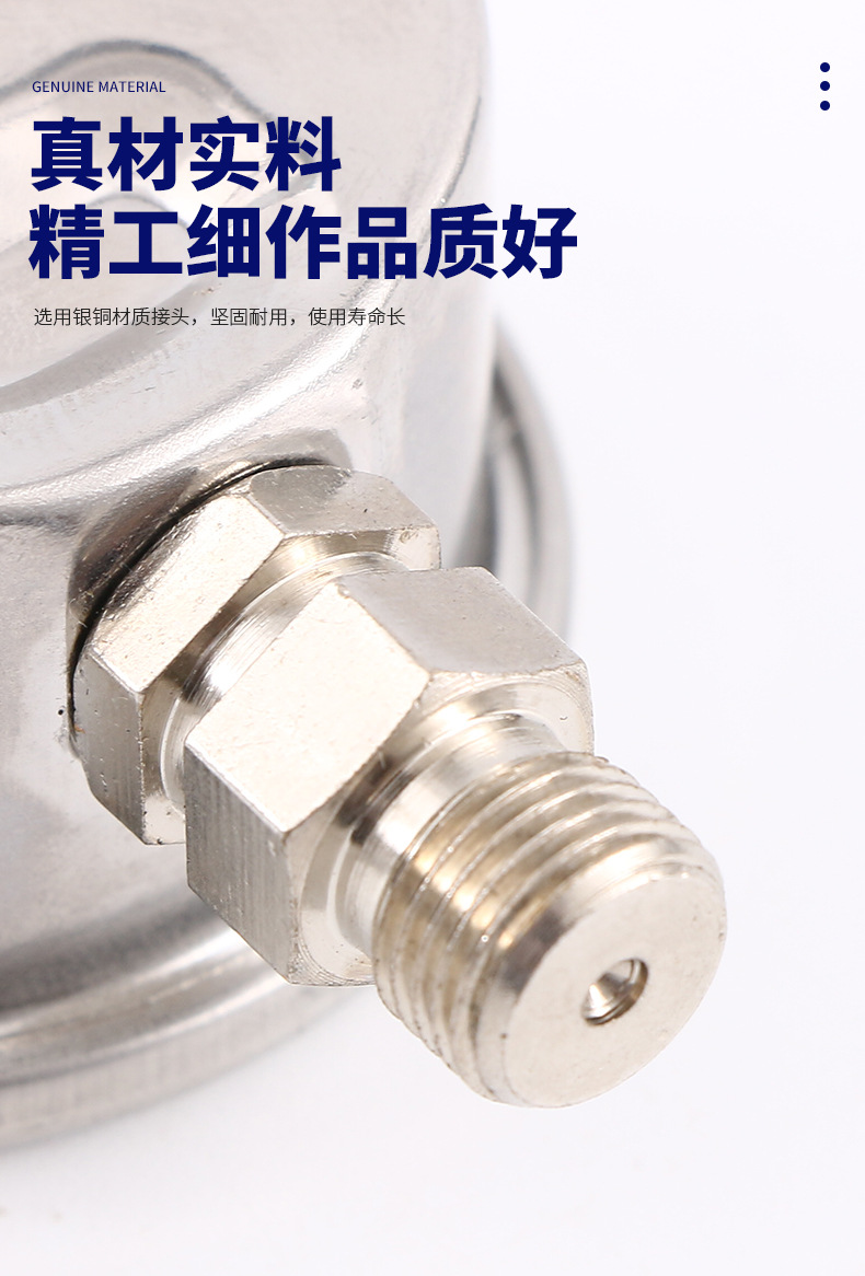 Y40L-A Pressure Gauge Durable Explosion-Proof 304 Stainless Steel Pressure Gauge Vacuum Pressure Gauge Water/Oil/Air Pressure Meter