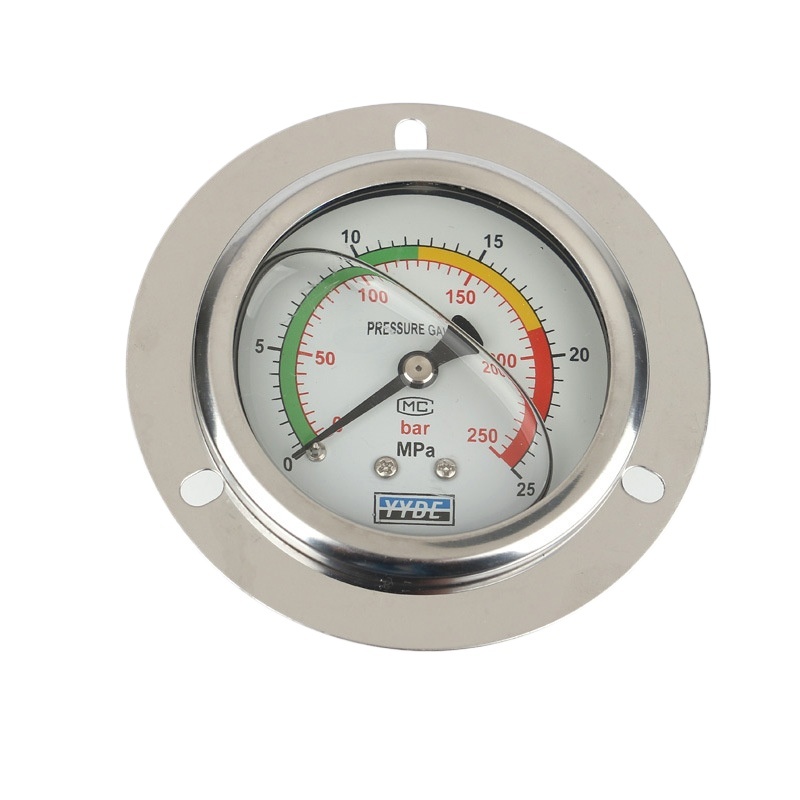 Y50 Axial Front Mount Pressure Gauge 0-25 MPa/bar, Liquid Filled, Vibration Resistant, YYDE Brand