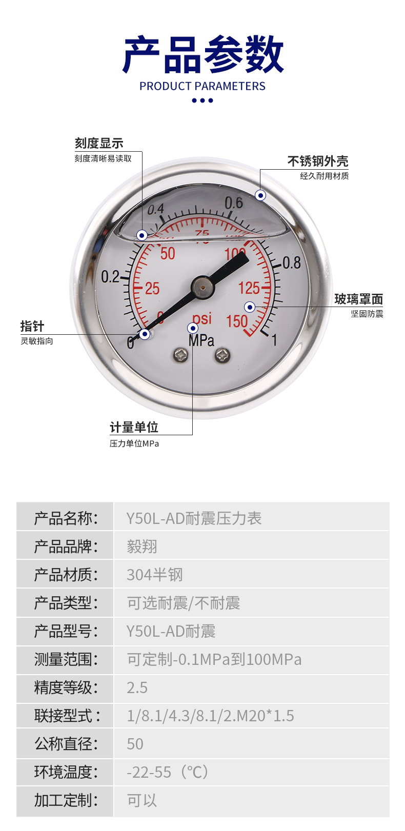 - What You Get: One Y50L-AD anti-vibration pressure gauge, offering a reliable replacement for your worn or faulty pressure meter, ensuring optimal system performance.