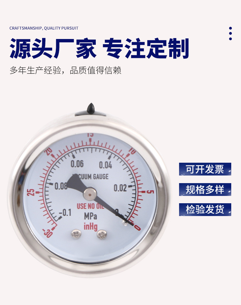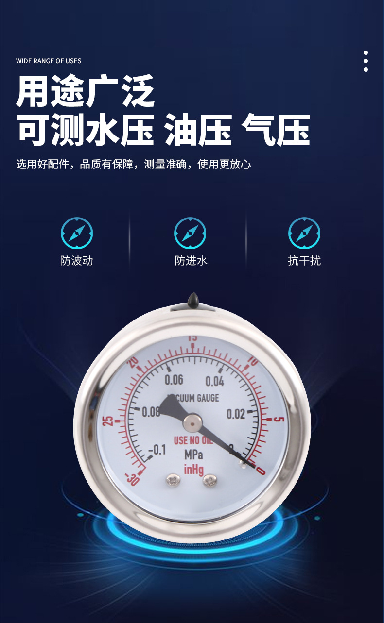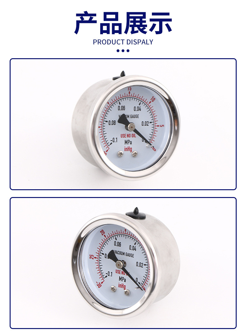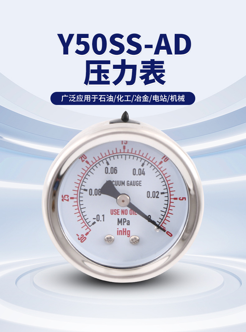 - Wide Compatibility: Y50SS-AD pressure gauge is designed for various applications, compatible with water, air, gas, and vacuum systems, offering versatile measurement solutions.