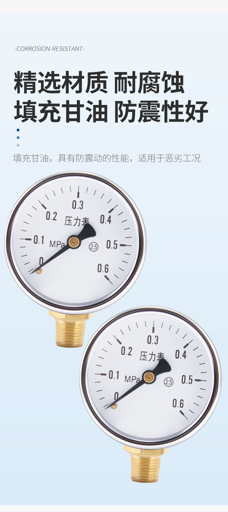 Hongqi YTN-60 Shock-Resistant Pressure Gauge – Oil-Filled Vacuum Gauge, M14*1.5 Connection, 0-60MPa & Negative Pressure, 60mm Diameter, High Precision