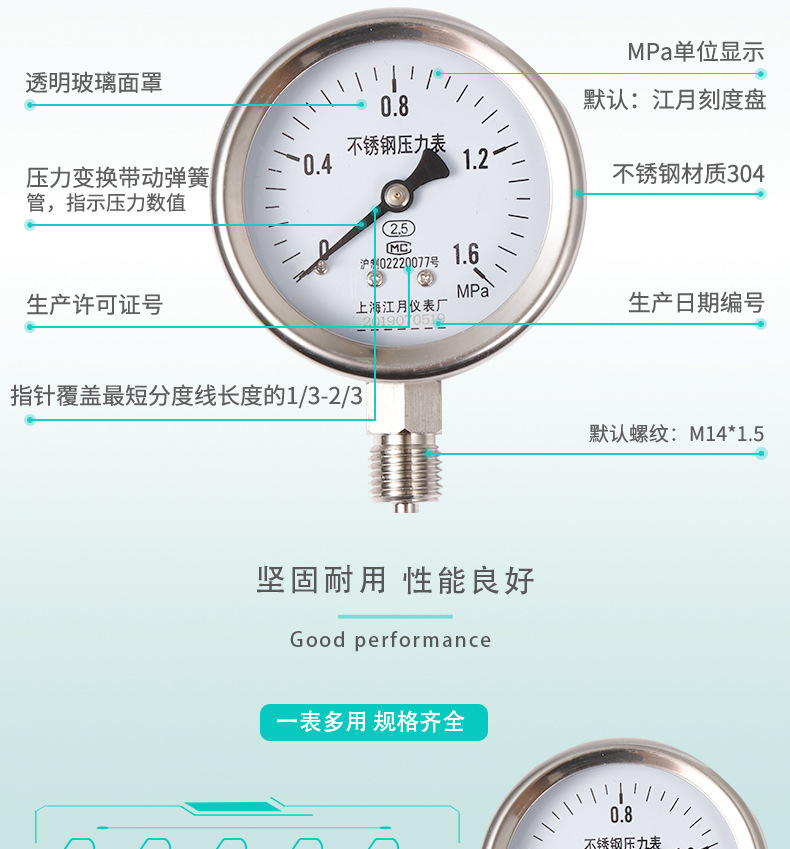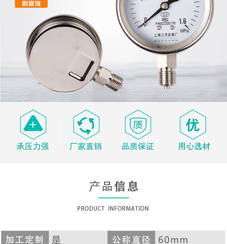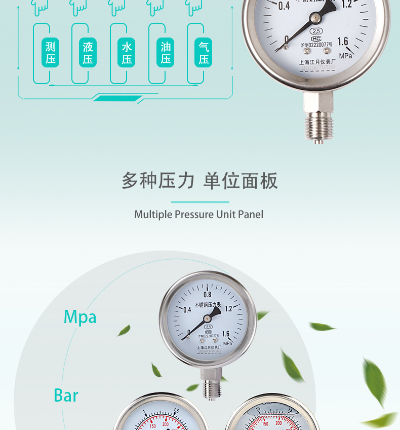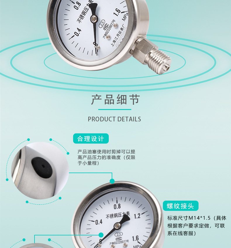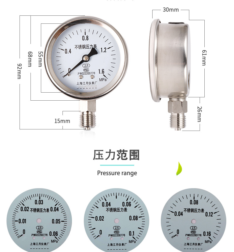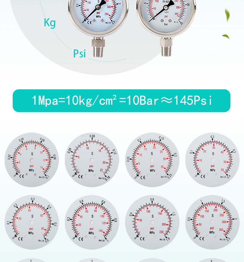 - Precise Measurement: Features a 0-1.6 MPa measurement range with 2.5 accuracy class, providing reliable and precise readings for effective pressure monitoring and control.
