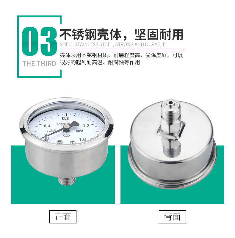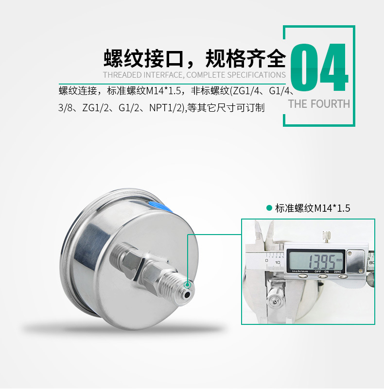 - Wide Compatibility: Y60ZBF axial pressure gauge, compatible with various HVAC systems for water, oil, gas, and hydraulic pressure measurement with M14*1.5, 1/4, 1/2 threaded connections.