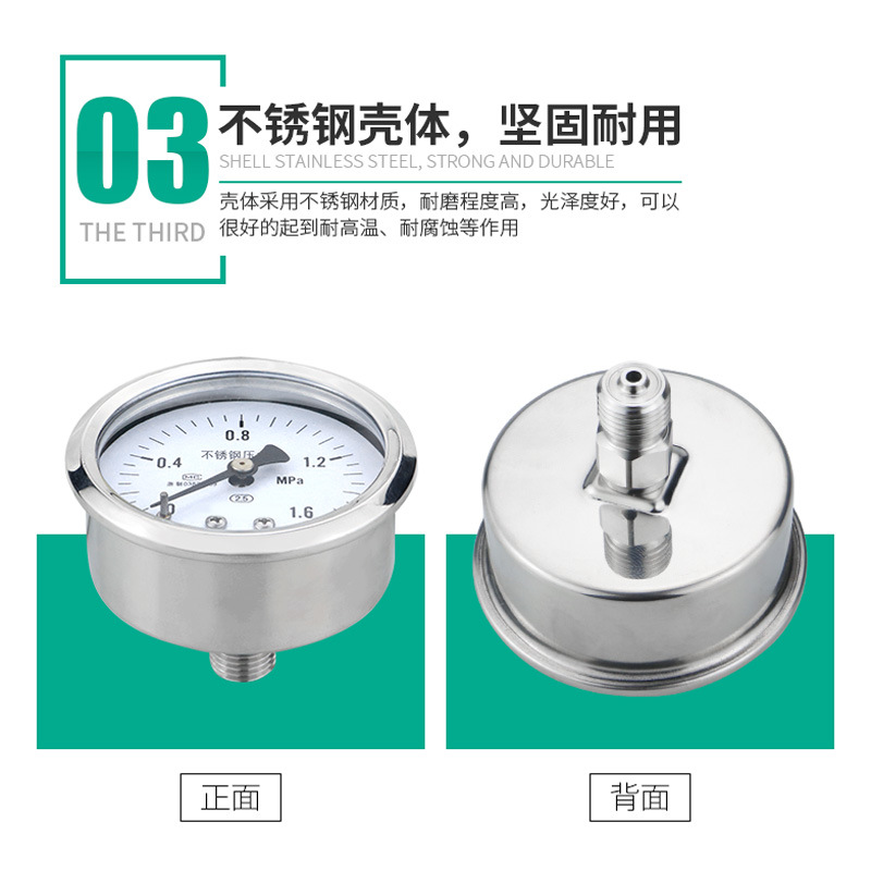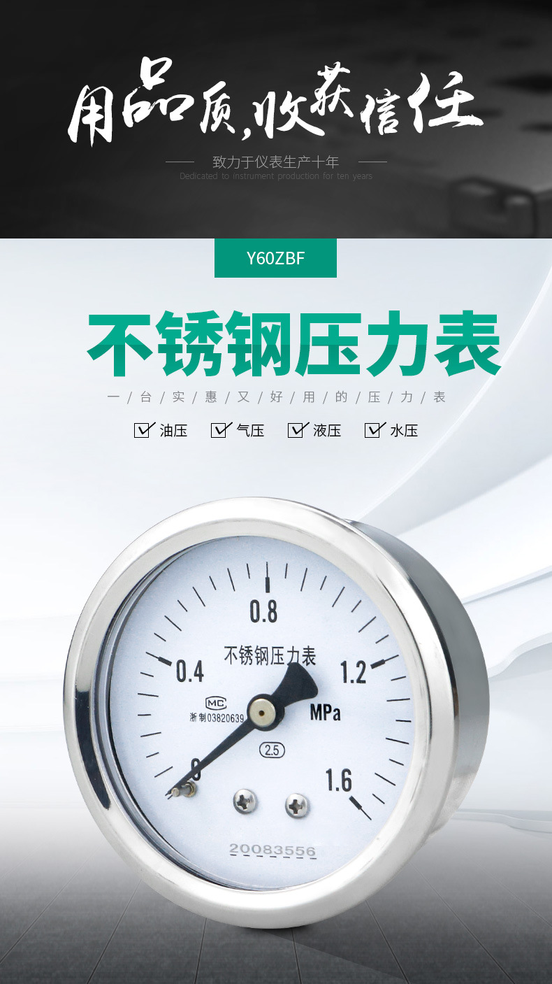 Y60ZBF Stainless Steel Pressure Gauge (0-1.6MPa, Axial M14*1.5) for Water Oil Gas HVAC Systems