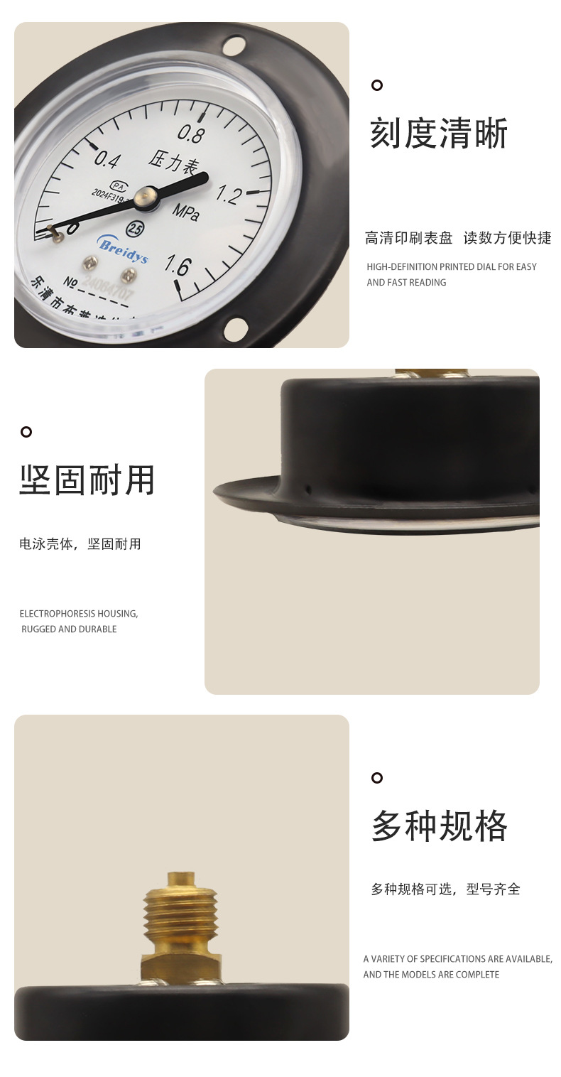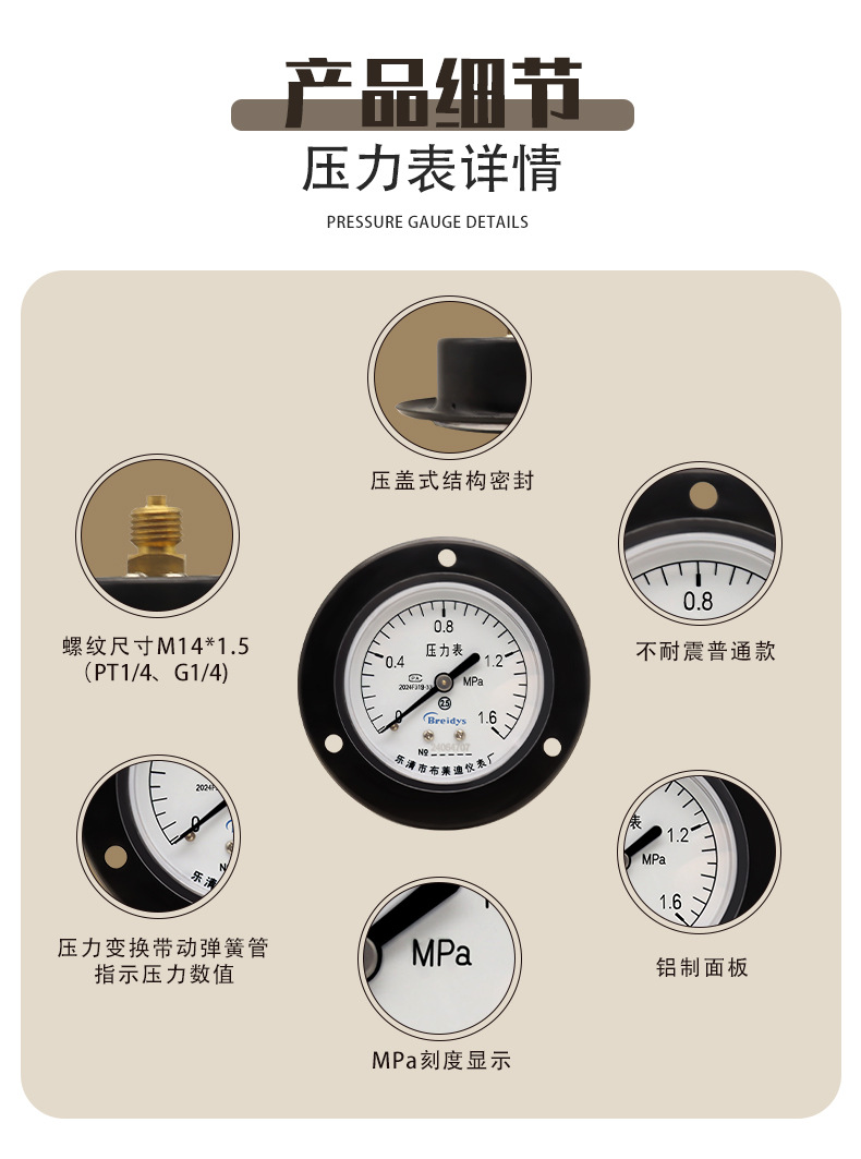 - Key Specs & Performance: Offers a precise measurement range of 0-1.6 MPa with a clear, easy-to-read dial for accurate pressure monitoring, enhancing system safety and efficiency.