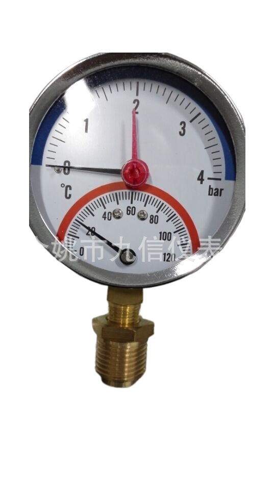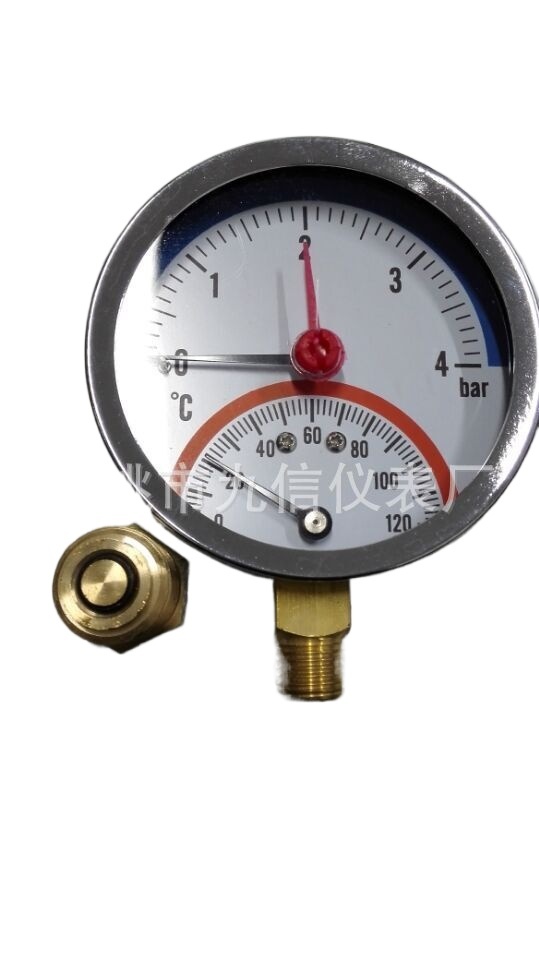 Y63 HVAC Thermometer Pressure Gauge with Stainless Steel Case (0-4 bar, 0-120°C)