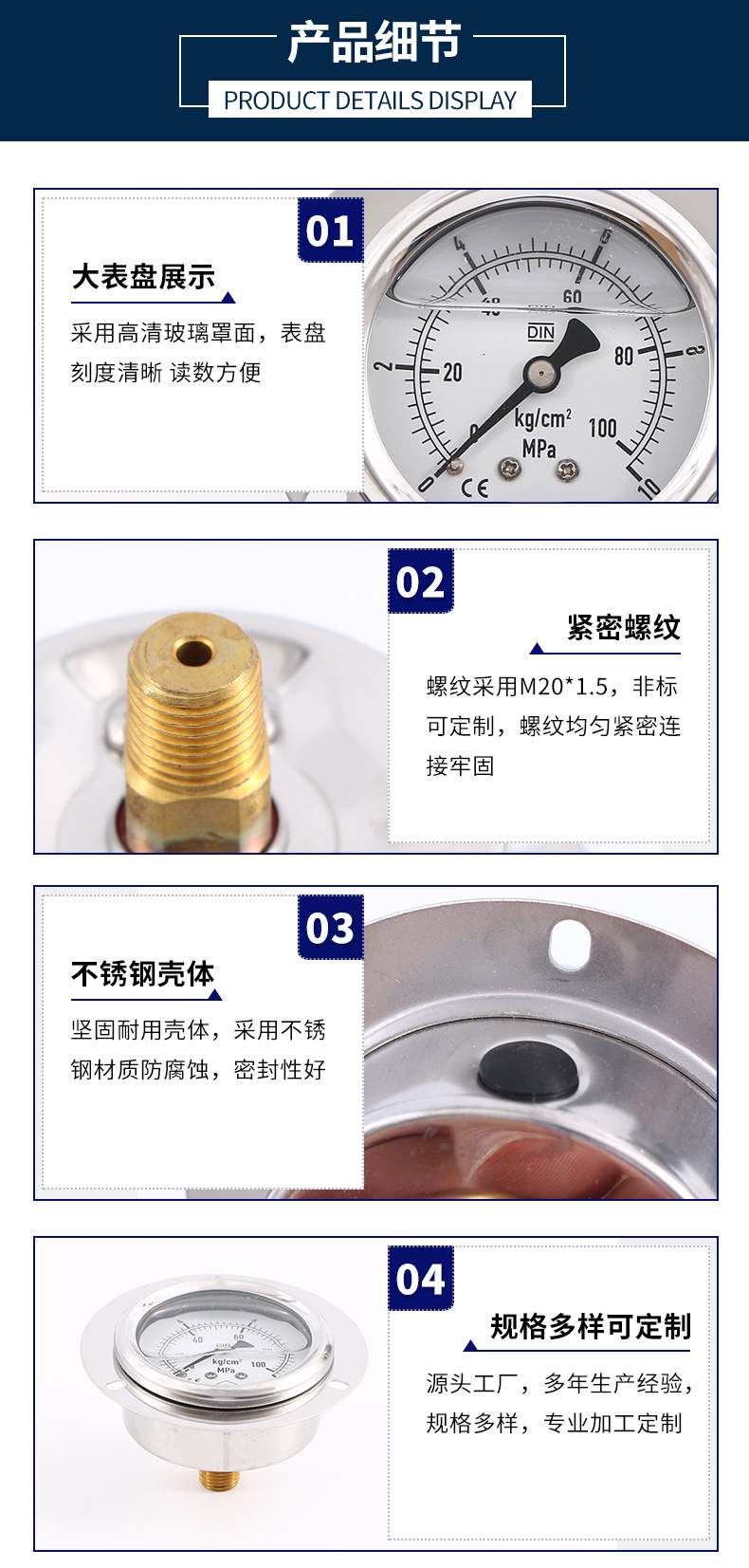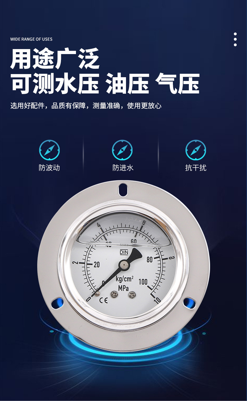 - Accurate Measurement: Offers a wide measuring range from -0.1 to 100 MPa with a 2.5 accuracy class, suitable for precise monitoring of water, hydraulic, and oil pressure systems.