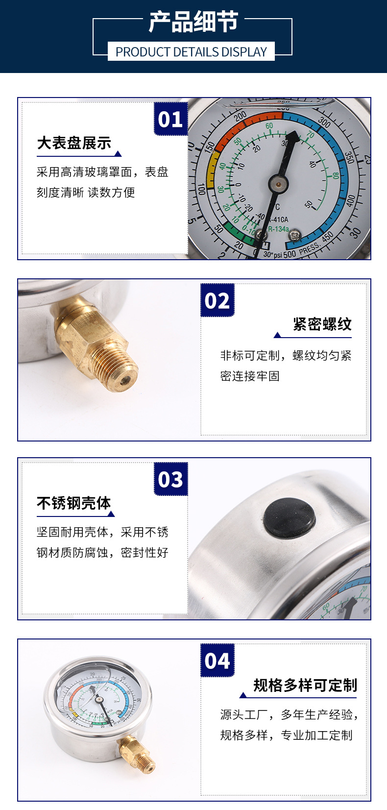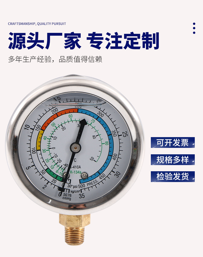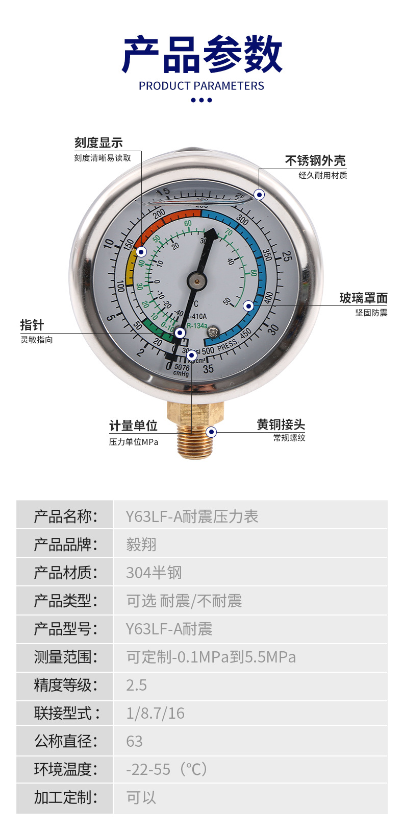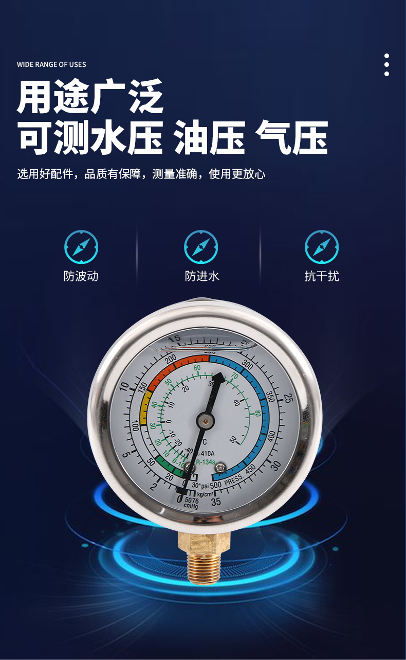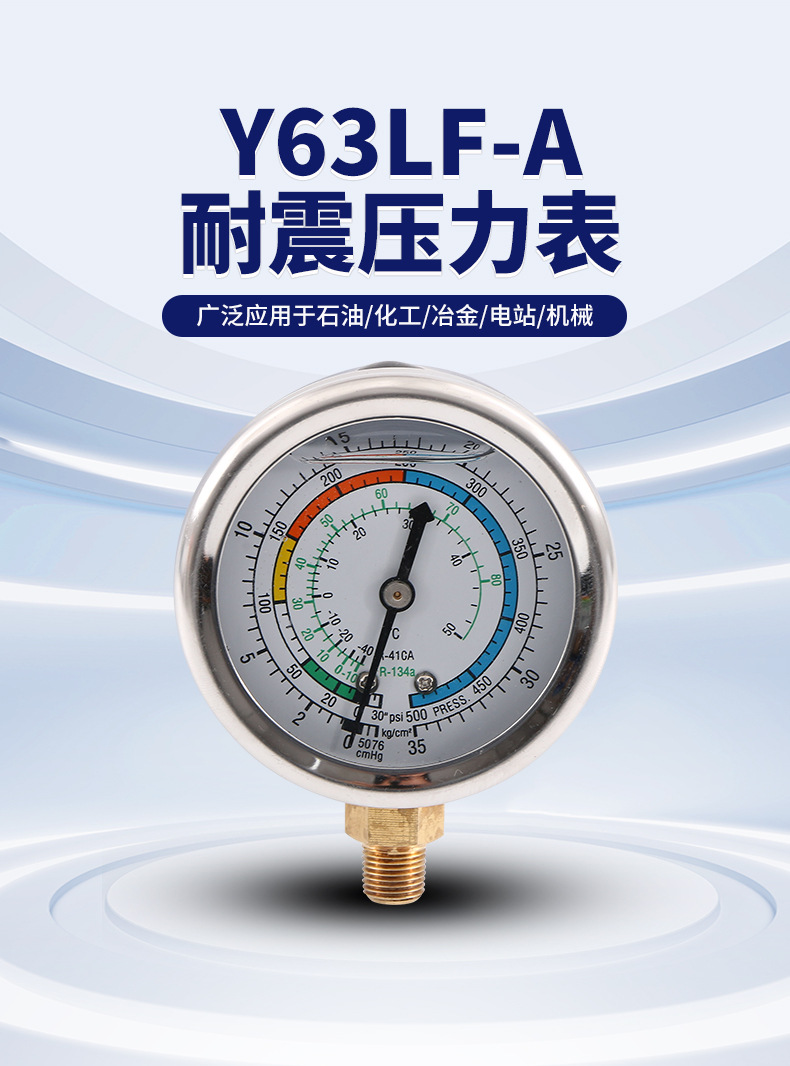 - Wide Compatibility: Y63LF-A seismic pressure gauge designed for HVAC refrigeration systems, suitable for water, gas, oil, and hydraulic pressure measurement.