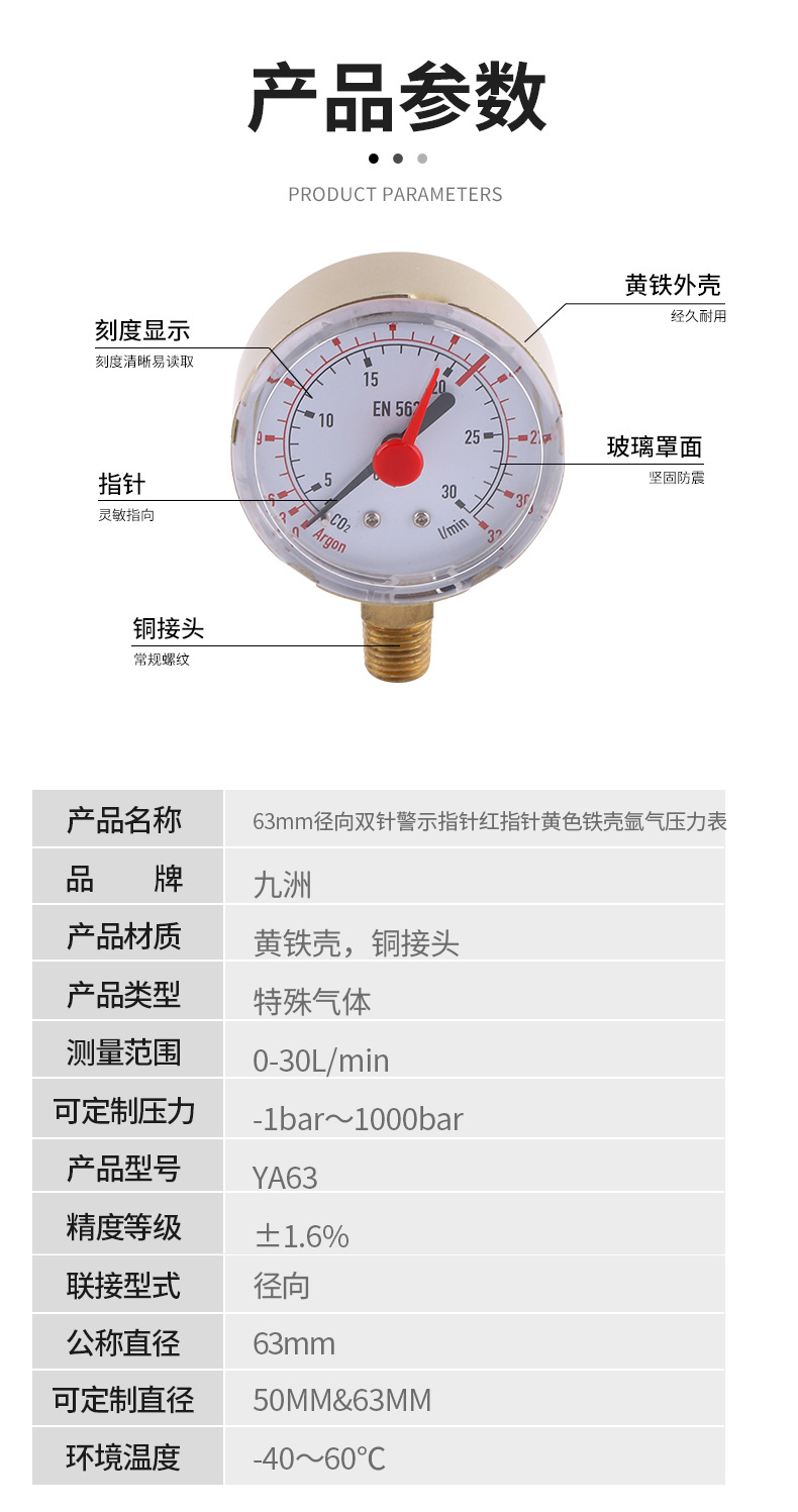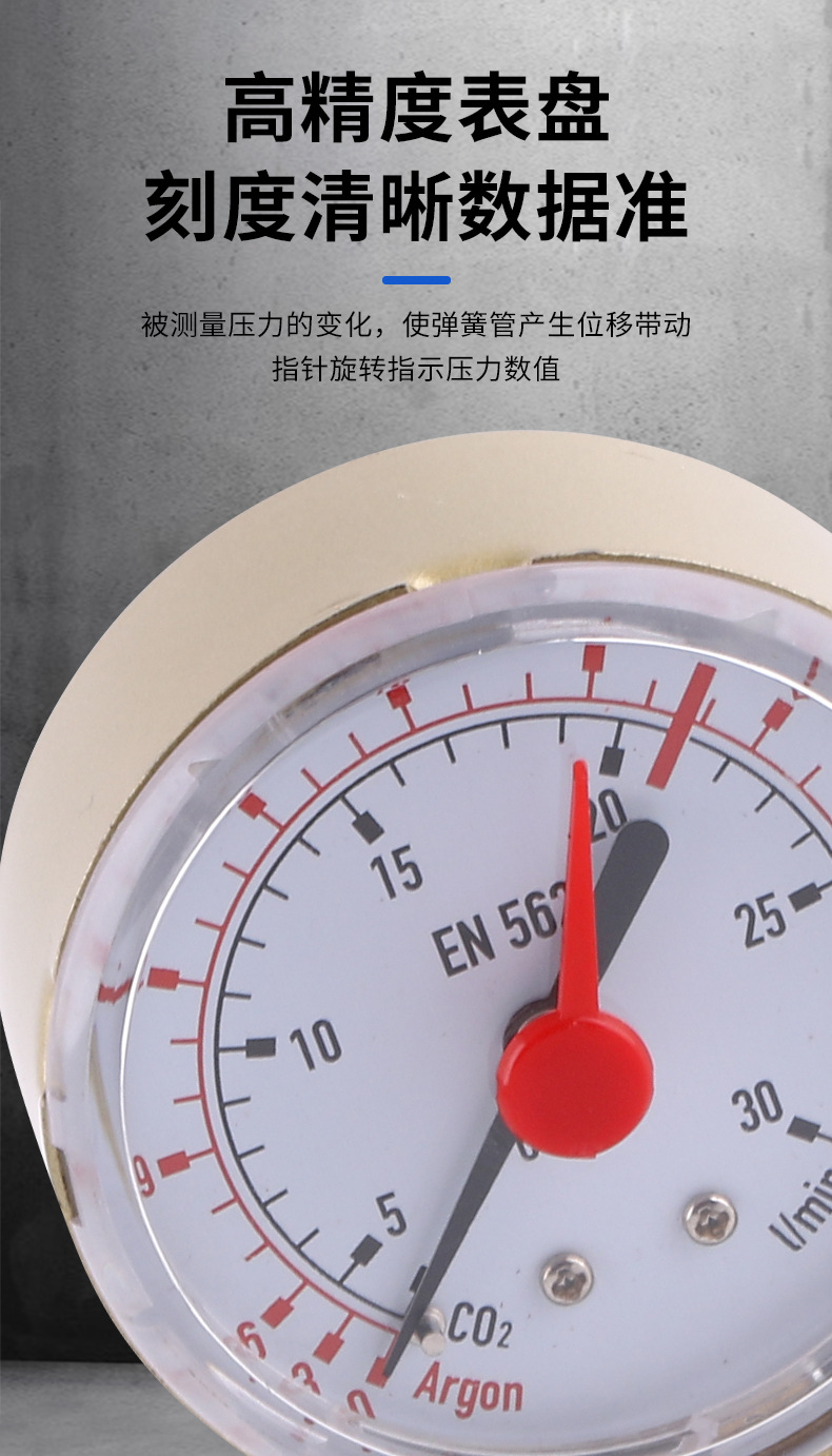 - Key Specs & Performance: 63mm radial dual-pointer gauge with a red warning pointer and a measurement range of 0-30 L/min, offering precise and easy-to-read gas flow indication. Conforms to EN 562 standard.