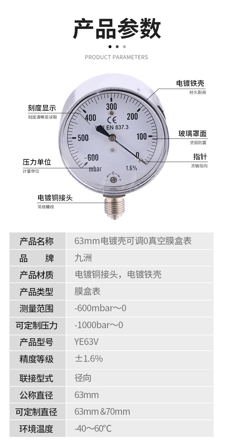 - Wide Compatibility: Specifically designed as model YE63V, a 63mm electroplated housing diaphragm vacuum pressure gauge, suitable for various HVAC systems requiring precise vacuum measurement.