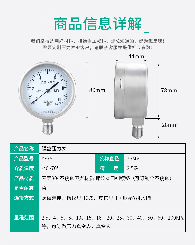 - What You Get: One YE75 Diaphragm Pressure Gauge, backed by a one-year warranty, ensuring peace of mind with your purchase and a reliable measurement solution.