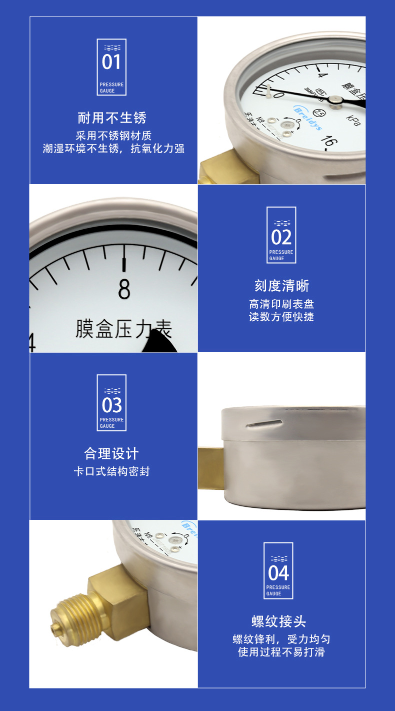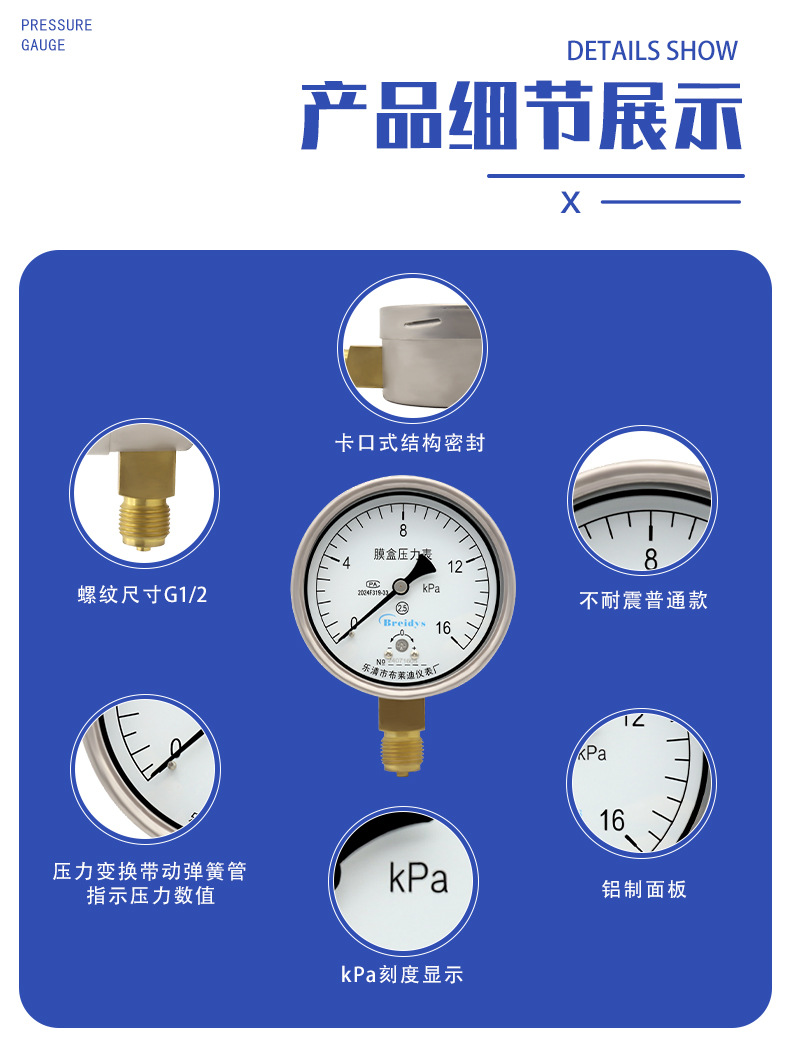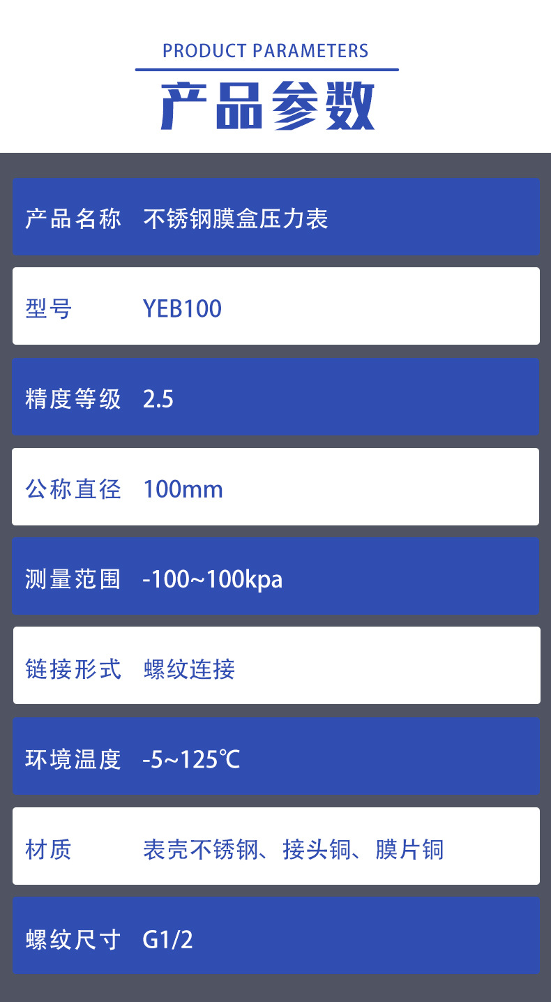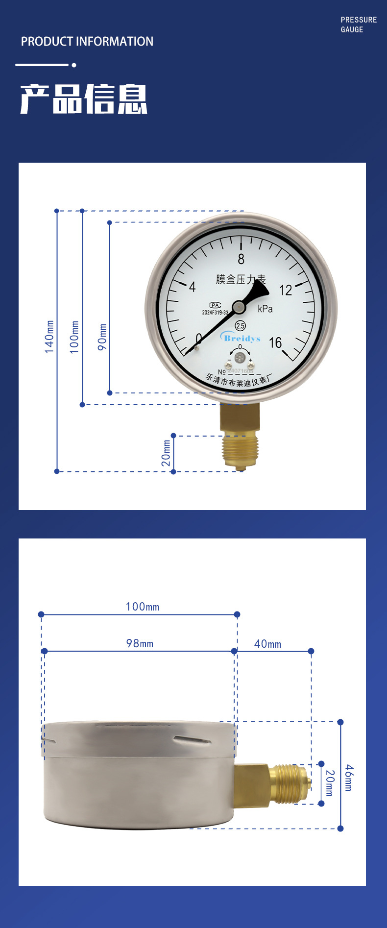 - Wide Compatibility: YEB100 diaphragm pressure gauge is suitable for various micro pressure measurement applications, including gas and high-temperature environments, offering a wide measurement range.