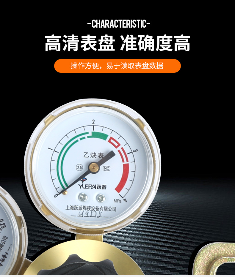 - Precision Acetylene Pressure Regulation: Features an input range of 0-4MPA and output of 0-0.25 (0-0.15 rated outlet pressure), ensuring accurate control for various welding and cutting tasks.