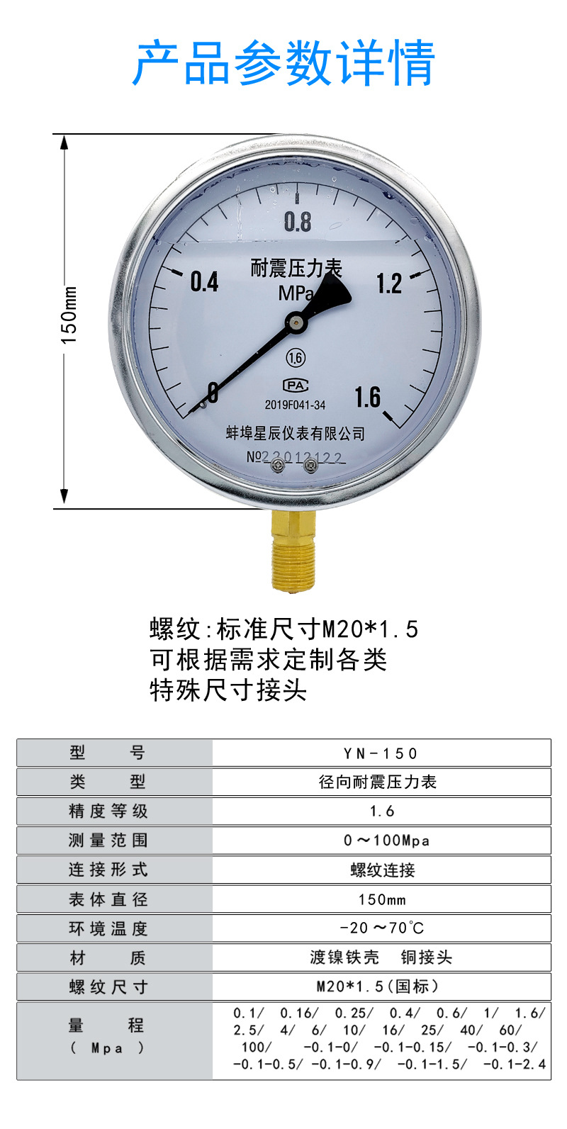 - What You Get: One YN-150 Series Pressure Gauge. Crafted for long-term accuracy and durability, providing peace of mind for your pressure monitoring needs.
