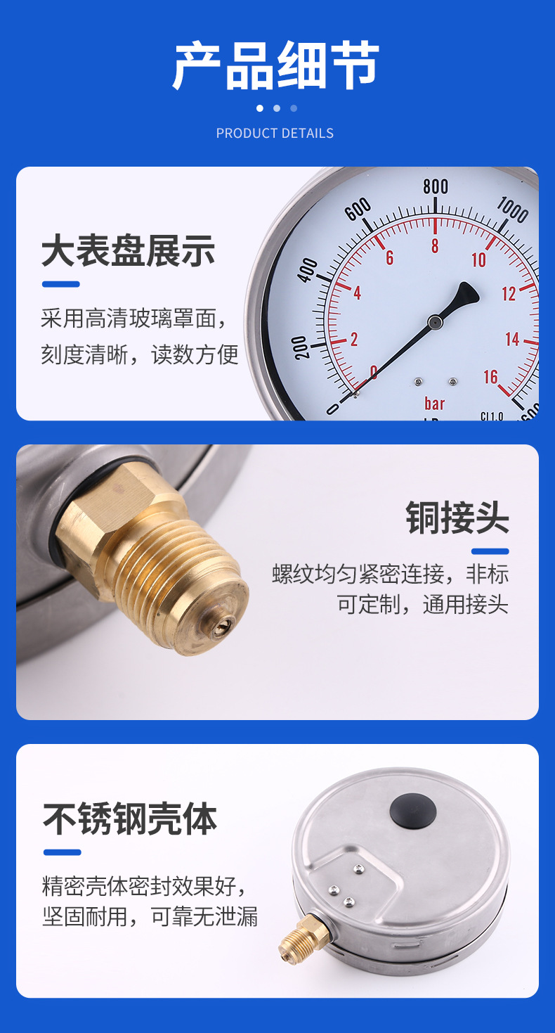 - What You Get: Includes one YN100C radial pressure gauge with matte stainless steel casing, ready for immediate use. Backed by reliable production standards.