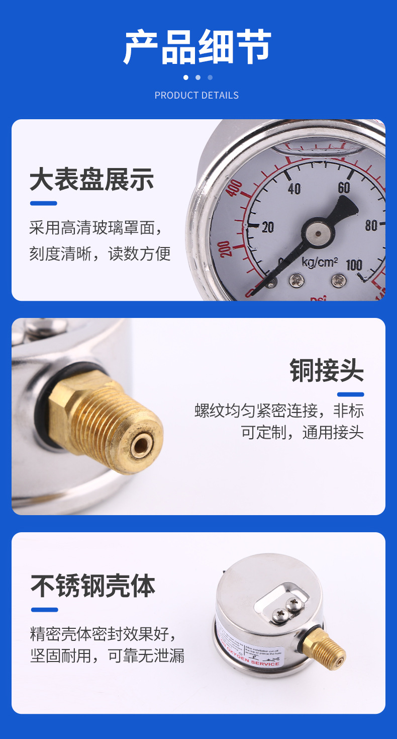 - Key Specs & Performance: Oil-filled design provides vibration resistance and ensures accurate readings with a precision grade of ±1.6%, maintaining performance in demanding environments.