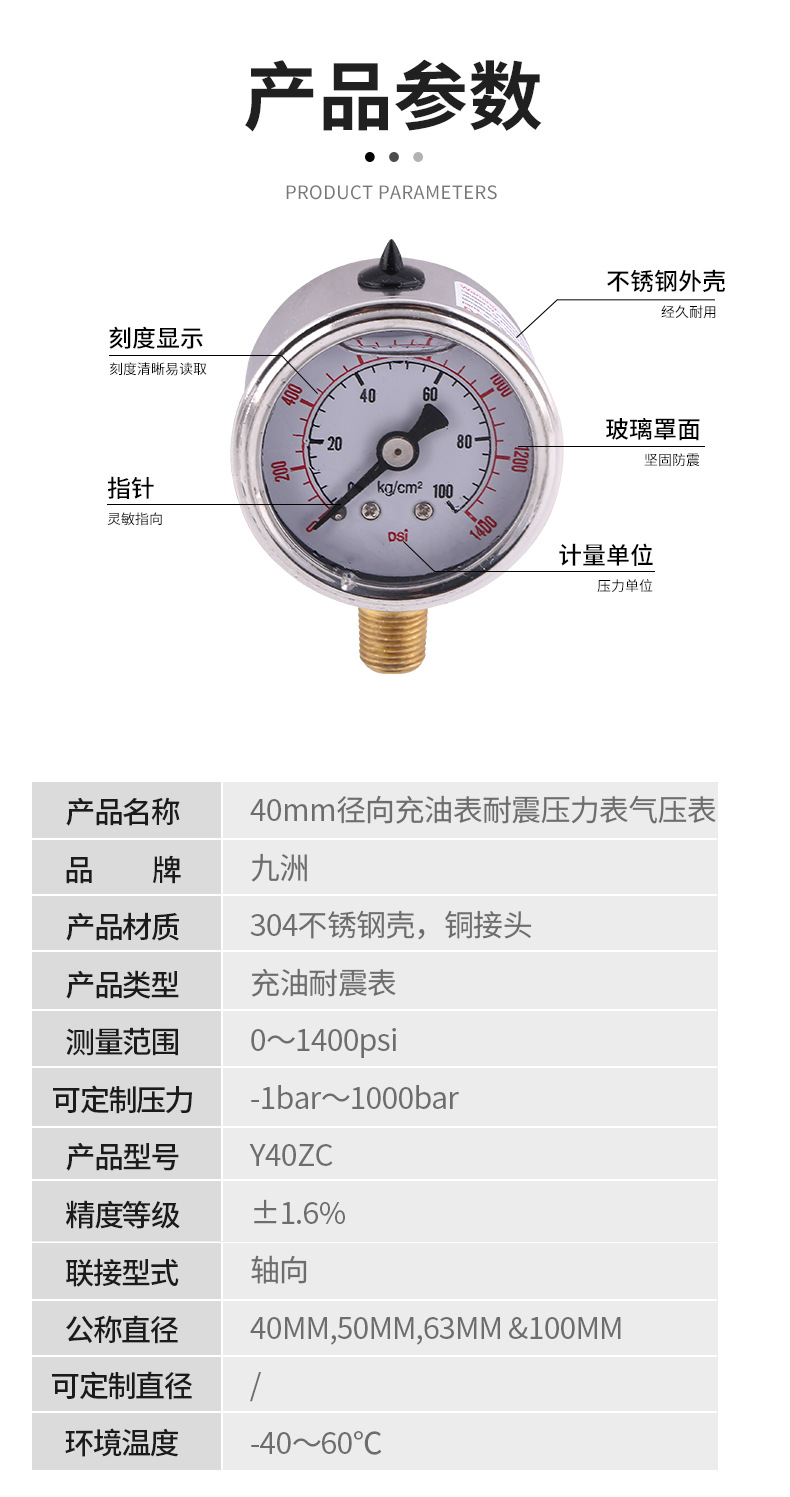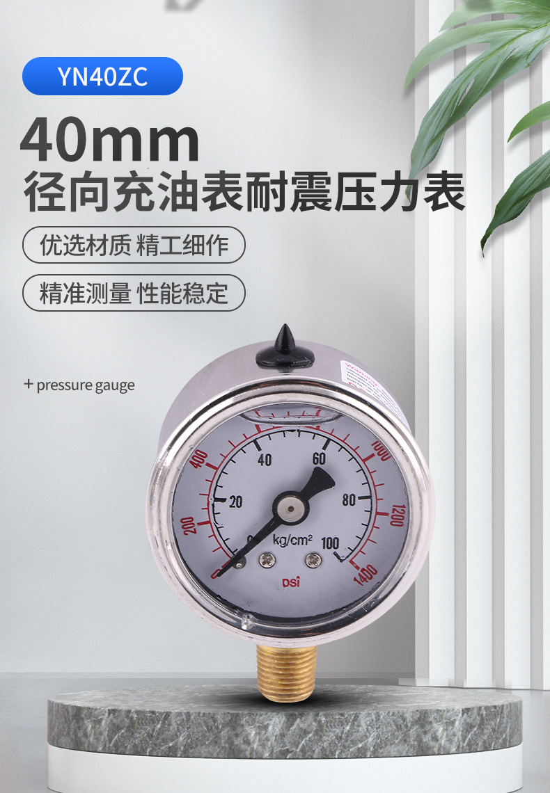 - What You Get: One YN40ZC oil-filled pressure gauge (40mm, 0-1400psi), perfect for monitoring air pressure and other media in industrial and HVAC applications.