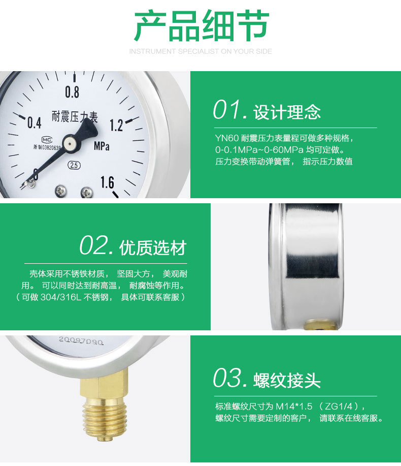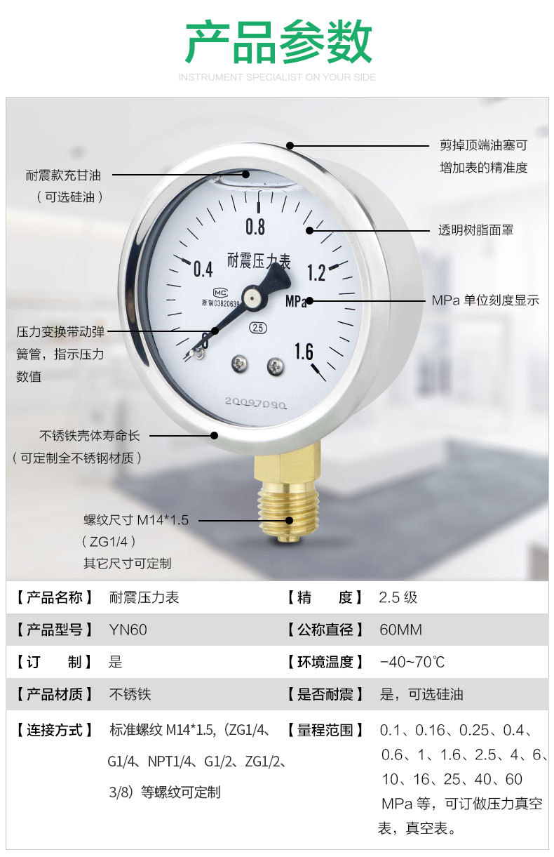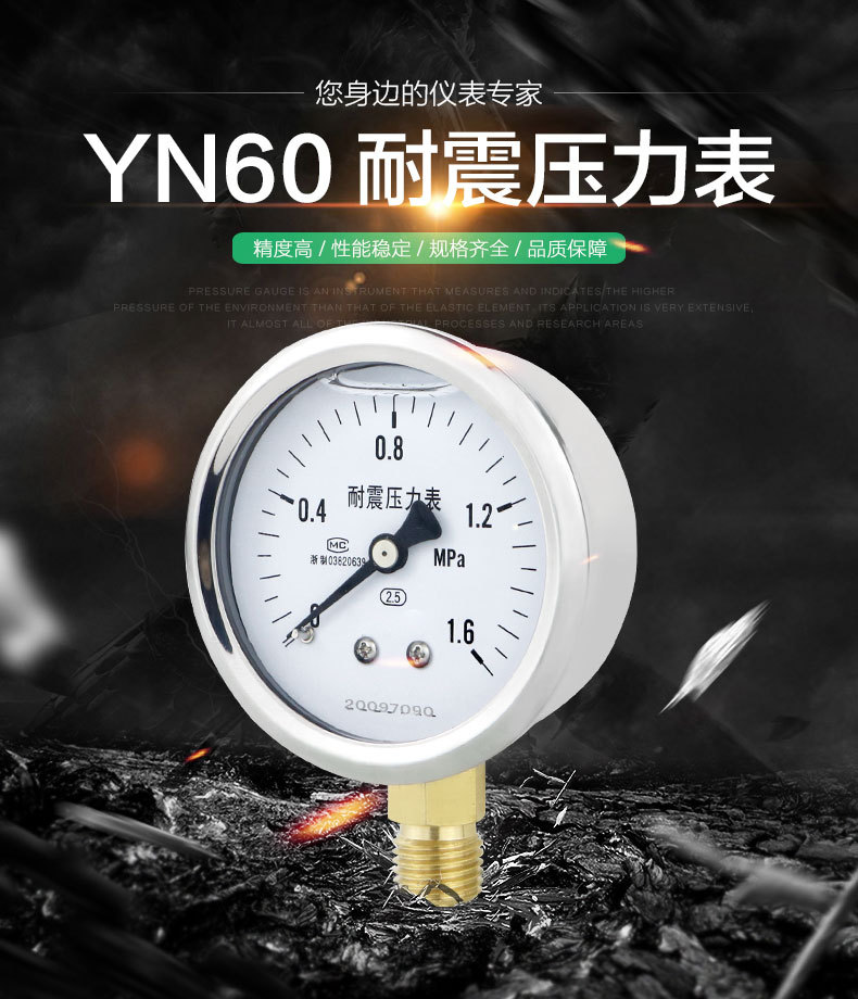 - Easy Installation: Designed for straightforward threaded connection, the YN60 pressure gauge allows for quick and easy installation into existing systems, minimizing downtime and effort.