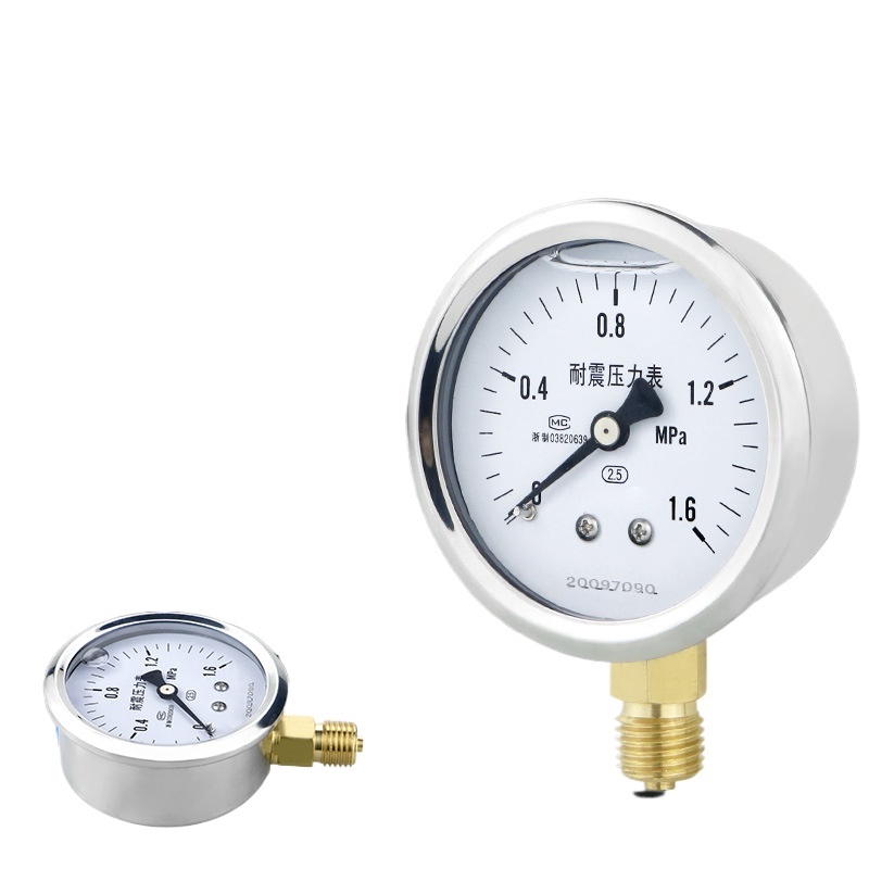 YN60 Pressure Gauge with Stainless Steel Casing and Brass Connection for Water, Liquid, Gas, and Oil Systems, 0-1.6 MPa, 2.5 Accuracy
