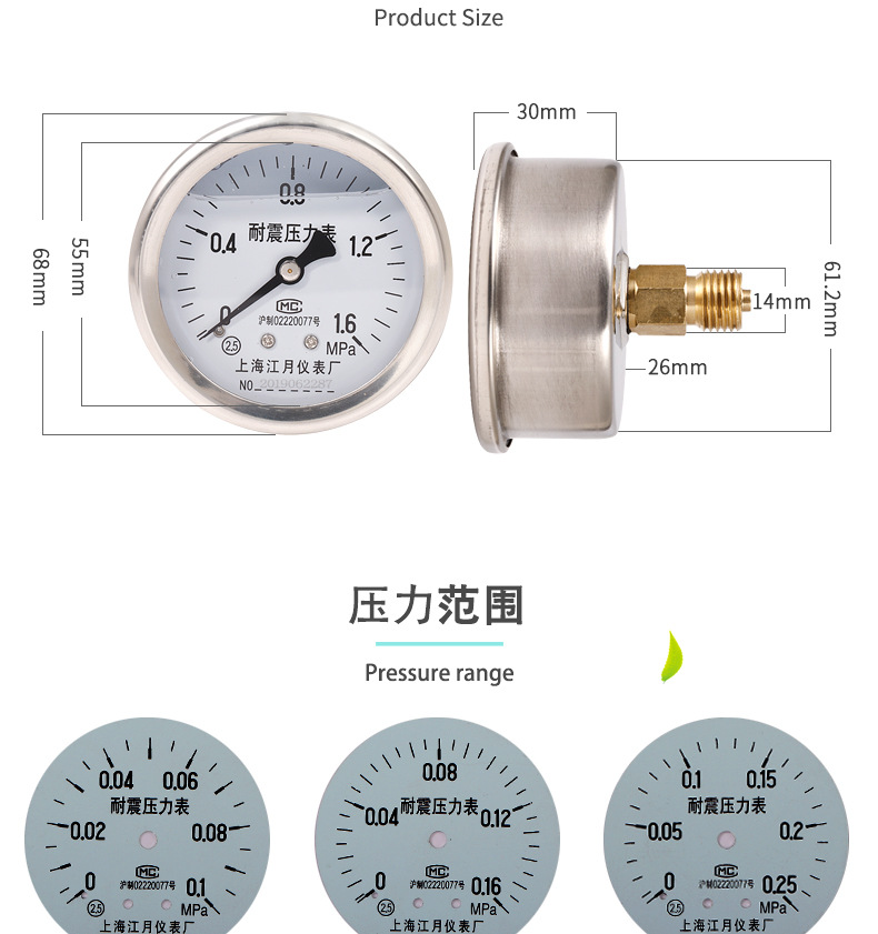 - Key Specs & Performance: Features a precise measurement range of 0-2.5 MPa with a 1.6 accuracy rating, providing reliable and accurate pressure readings for critical operations.