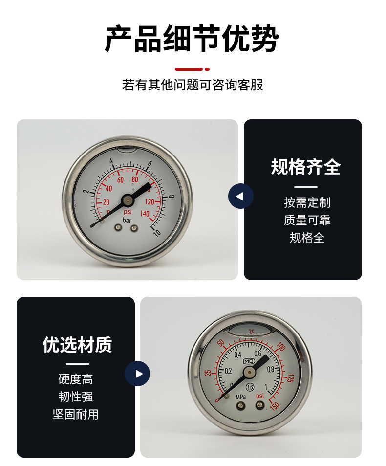 - Wide Compatibility: Ideal for water pipes, pumps, and various hydraulic systems, providing versatile pressure monitoring.