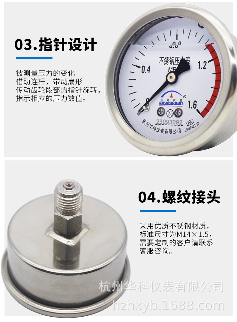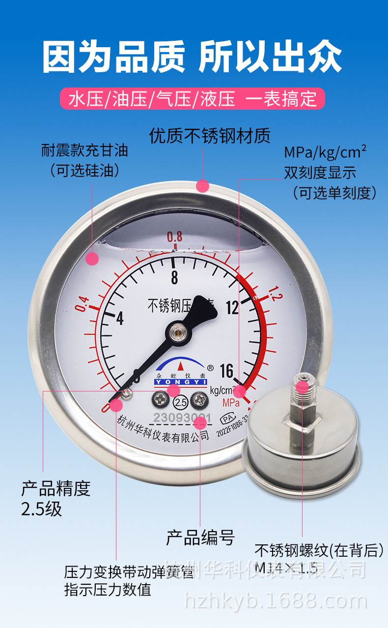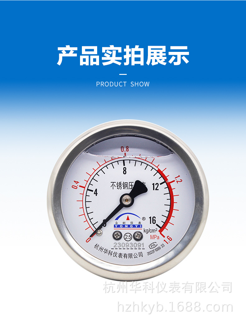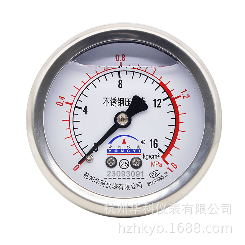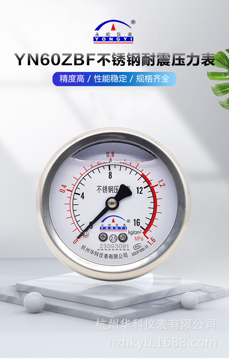 YN60ZBF Stainless Steel Axial Pressure Gauge (0-1.6 MPa, 60mm Dial) for Water, Liquid, Oil, Gas Systems Replaces YN60ZBF