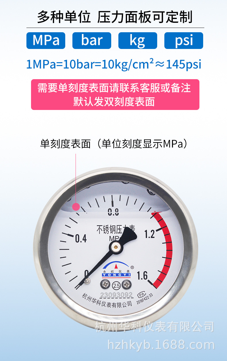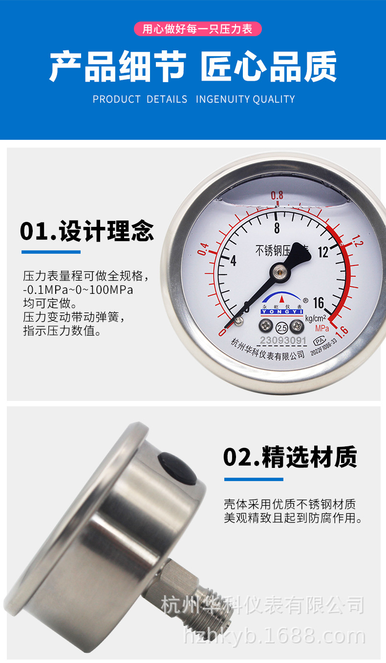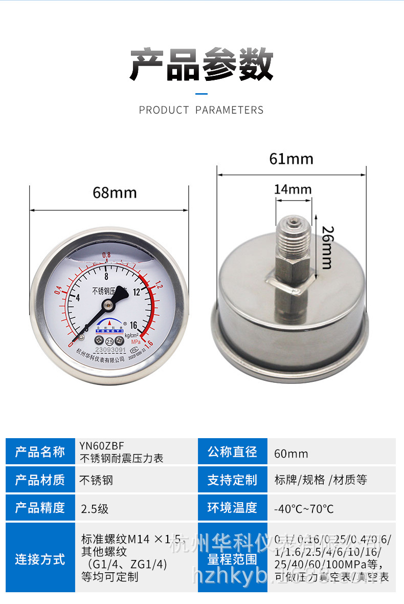 - Key Specs & Performance: Features an axial connection type, 60mm nominal diameter, and measurement ranges from -0.1 to 100 MPa. Provides accurate pressure readings with a 2.5 precision level and operates reliably from -40 to 70°C.