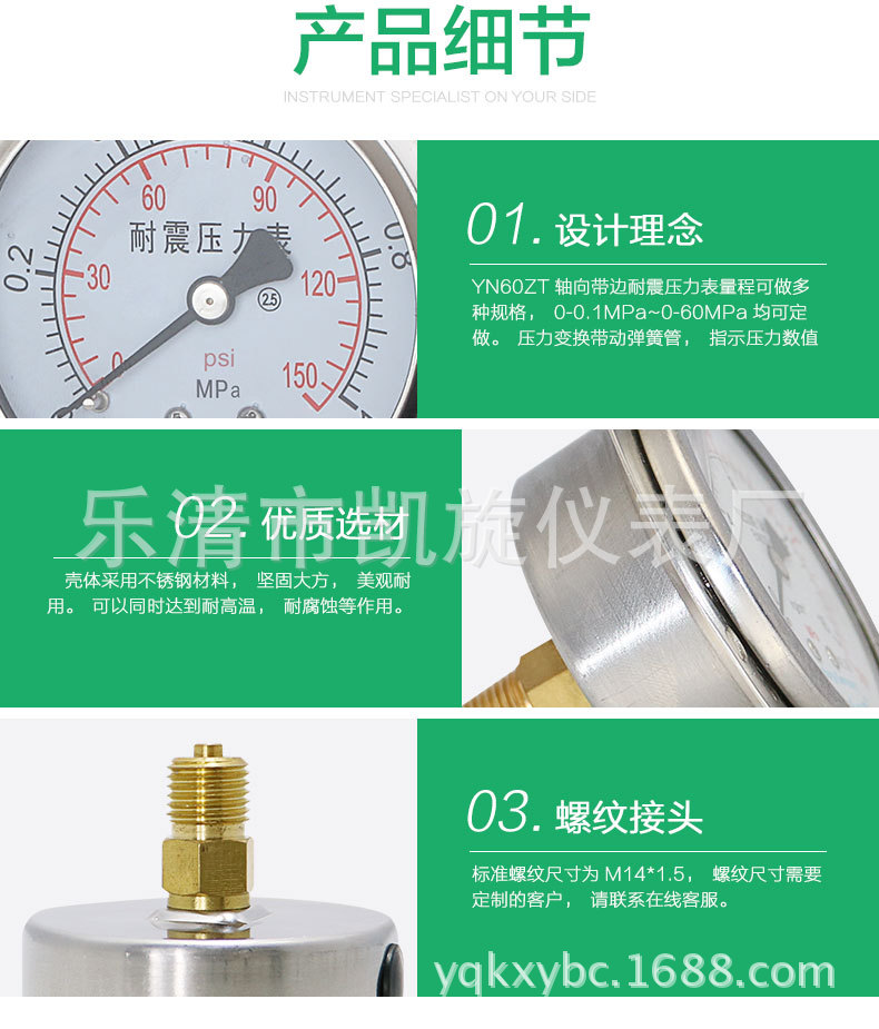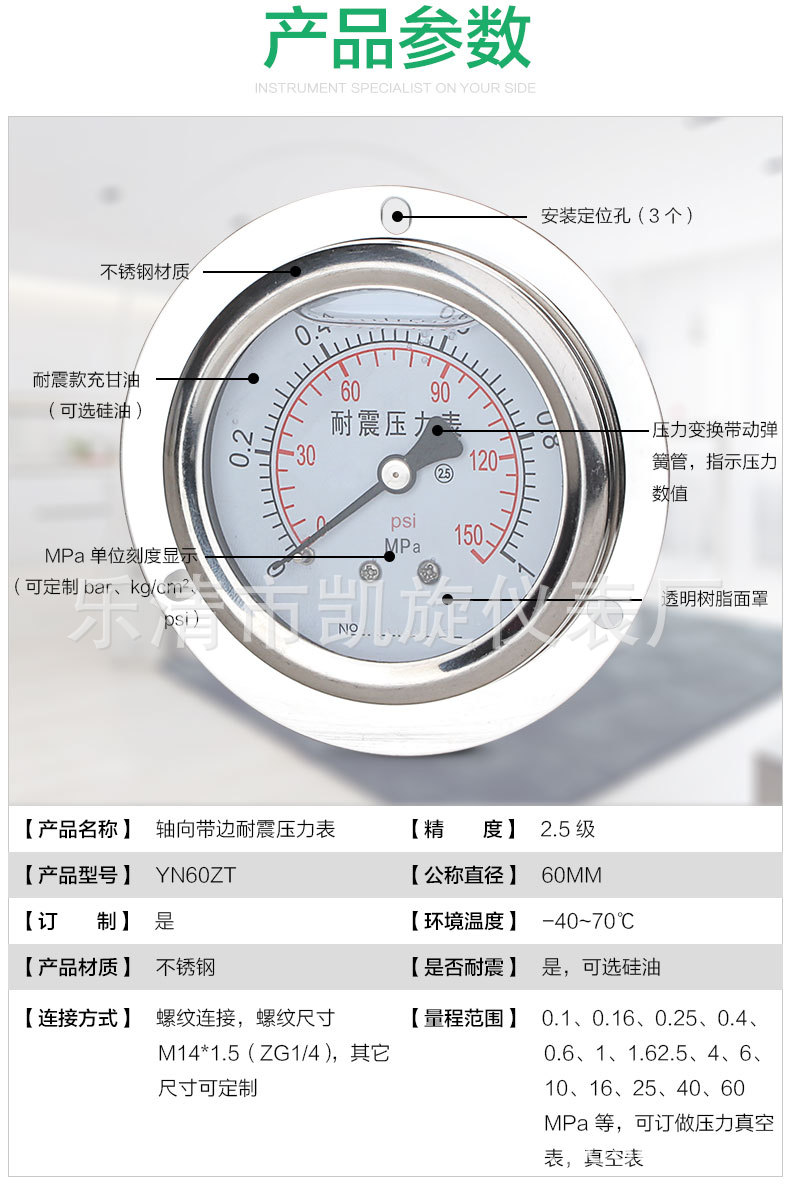 - What You Get: One YN60ZT Vibration-Resistant Pressure Gauge. Manufactured by Kaixuan Instruments, guaranteeing quality and dependable operation for your pressure monitoring needs.