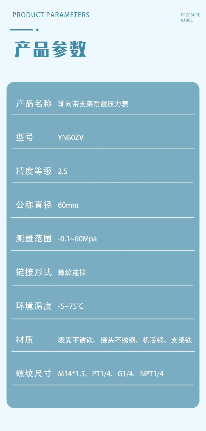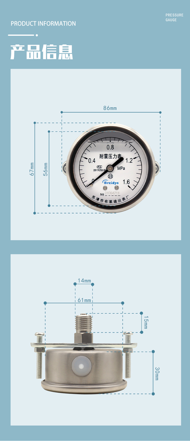 - Easy Installation: Equipped with a convenient screw thread connection and an axial bracket, this pressure gauge is designed for straightforward and secure installation in various setups.