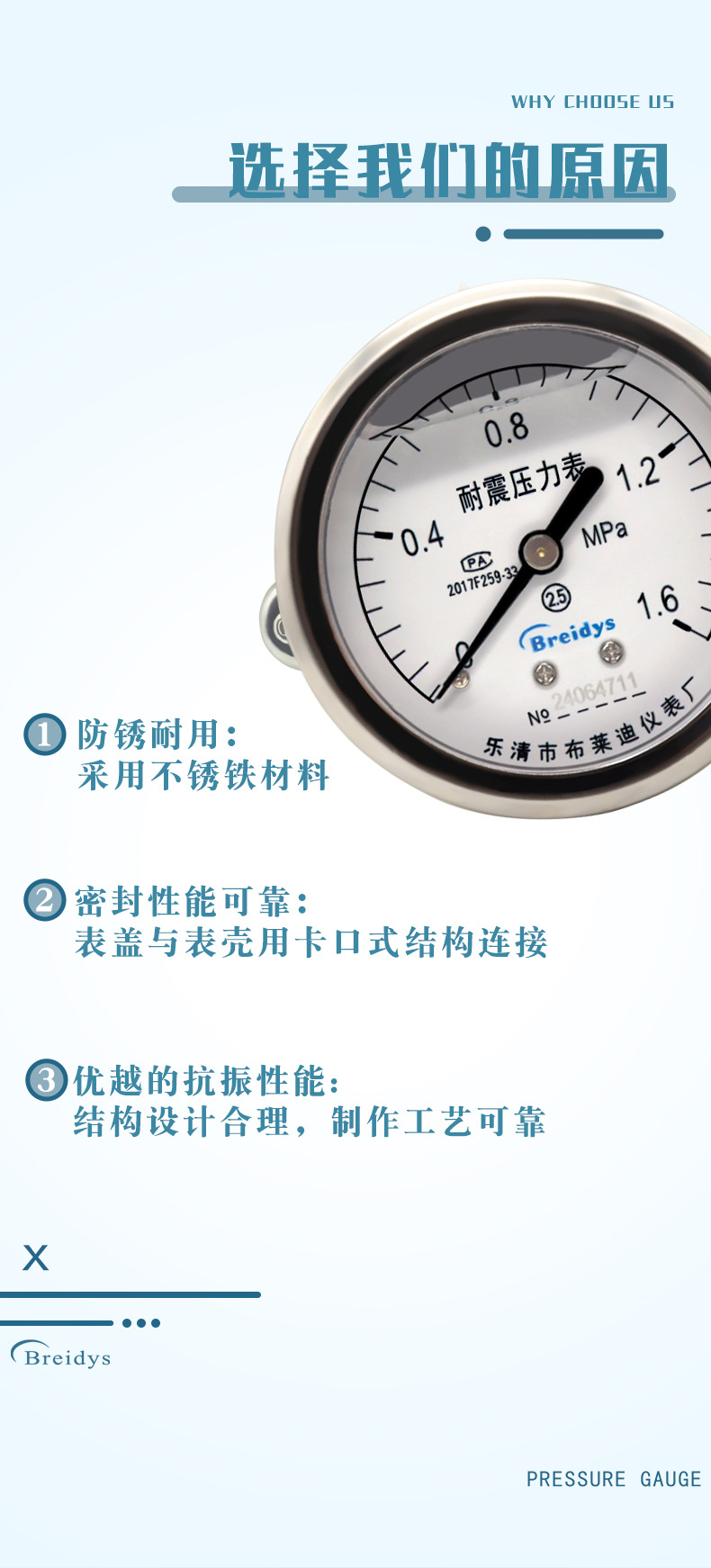 - Key Specs & Performance: With a measurement range of 0-1.6MPa and a precision rating of 2.5/1.6, this gauge provides accurate readings for critical monitoring, ensuring operational safety and efficiency.
