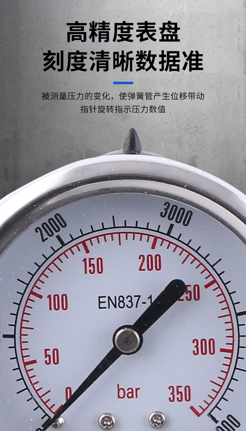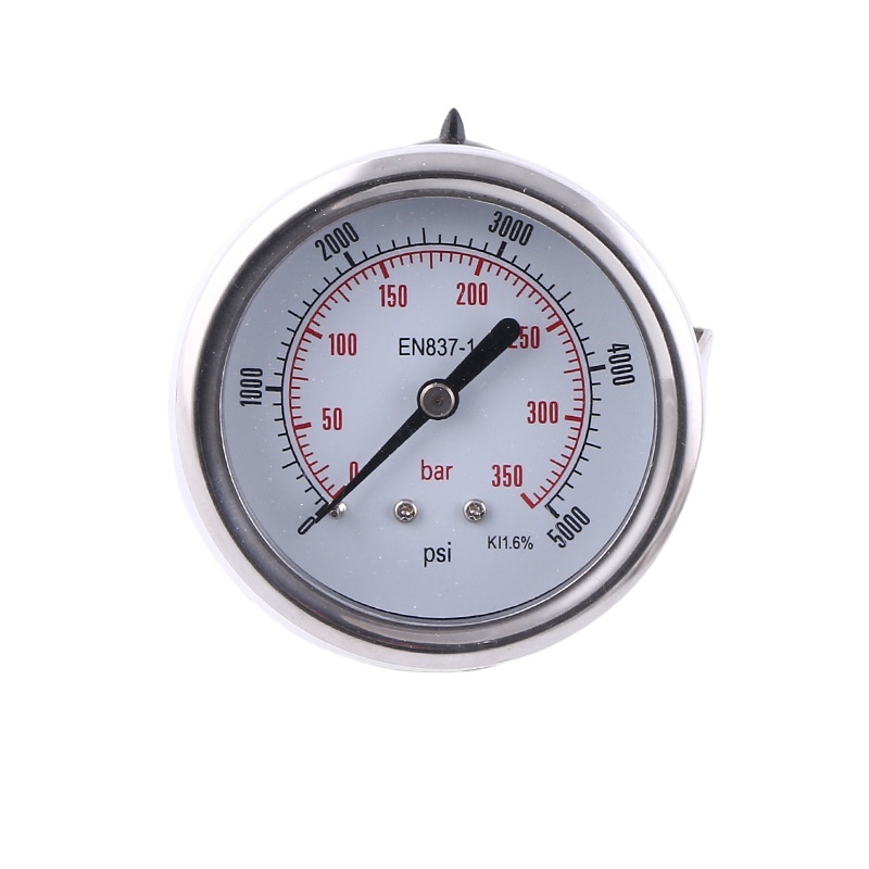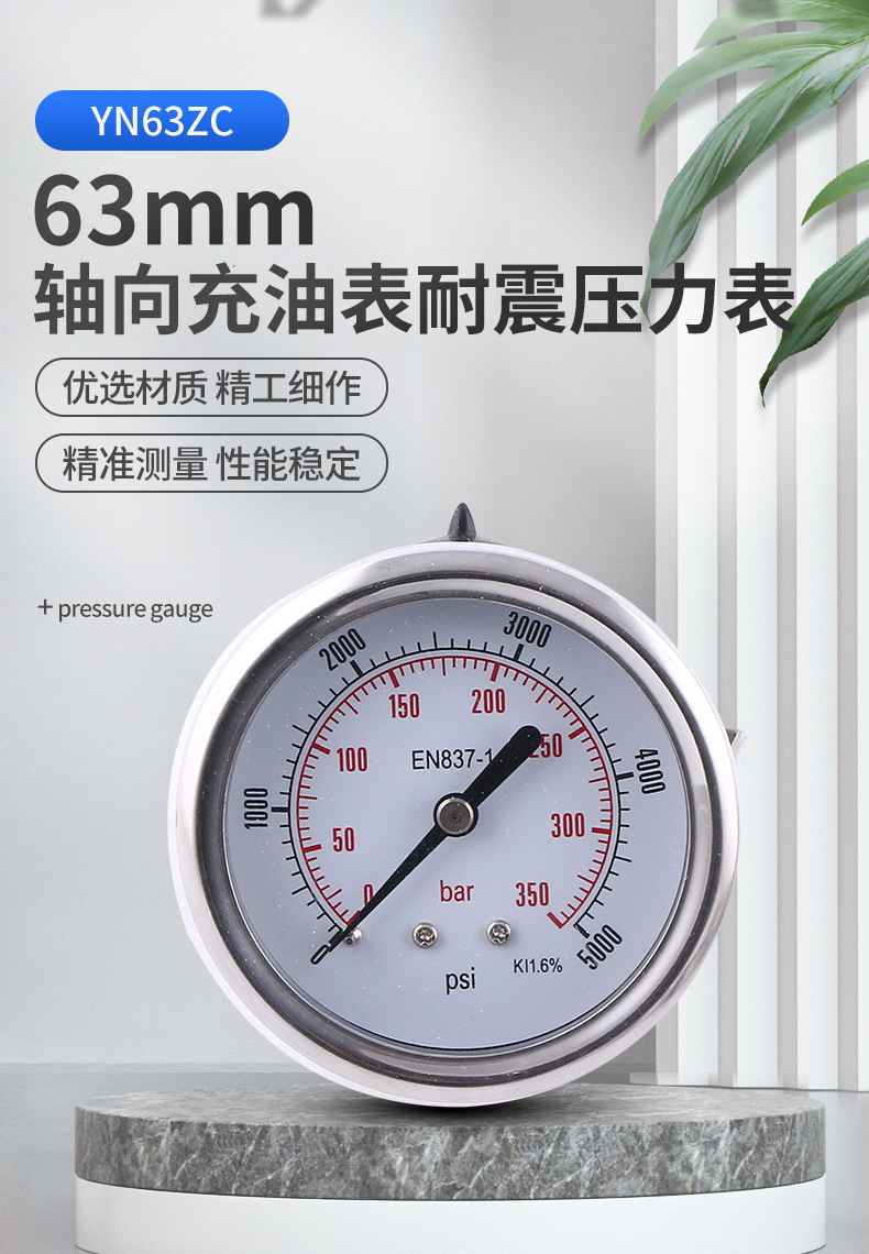 YN63ZC 63mm Axial Oil-Filled Pressure Gauge (0-350bar/5000psi, ±1.6% accuracy, Stainless Steel) for HVAC Systems