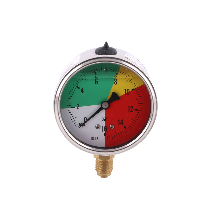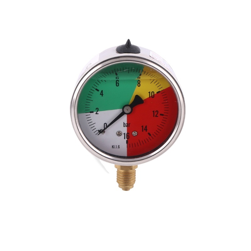 YN63ZC 63mm Radial Oil-Filled Pressure Gauge (0-16 bar/psi) KI.1.6 Bourdon Tube Shock-Resistant Air Pressure Gauge with Stainless Steel Case and Brass Connection for HVAC Systems, Replaces Standard Gauges