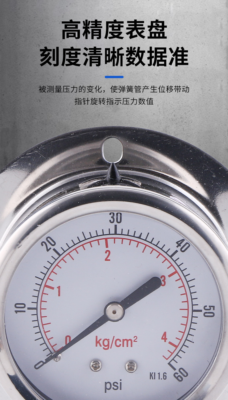 Hongqi Y-60 Pressure Gauge Water Pressure Vacuum Negative Pressure Meter for HVAC Firefighting Tire Pressure
