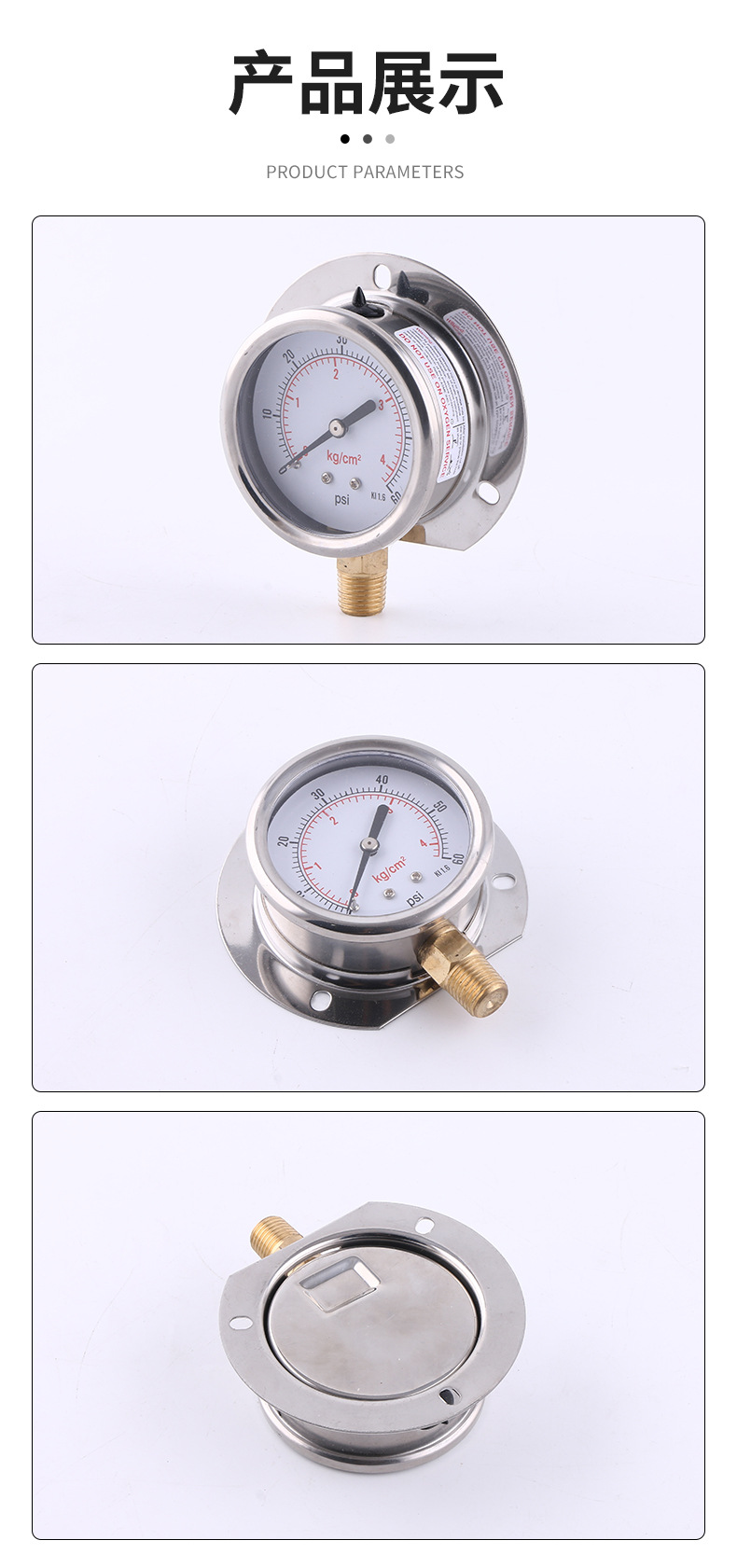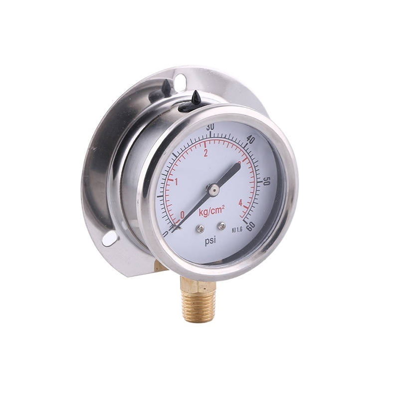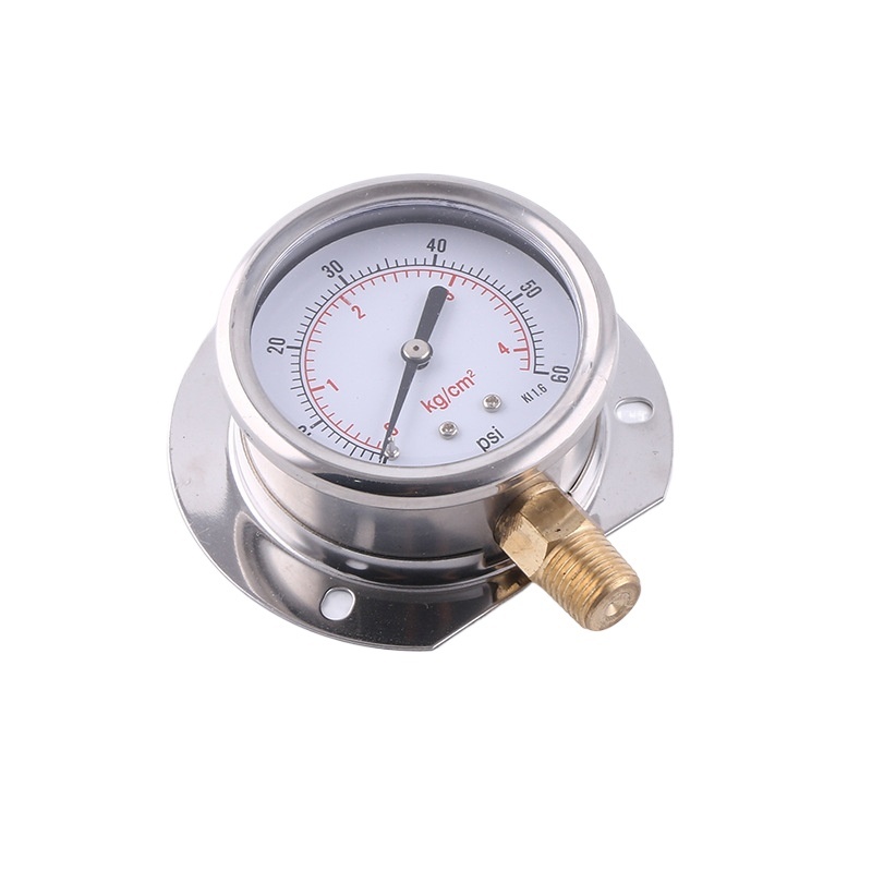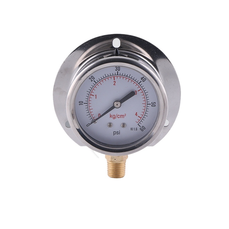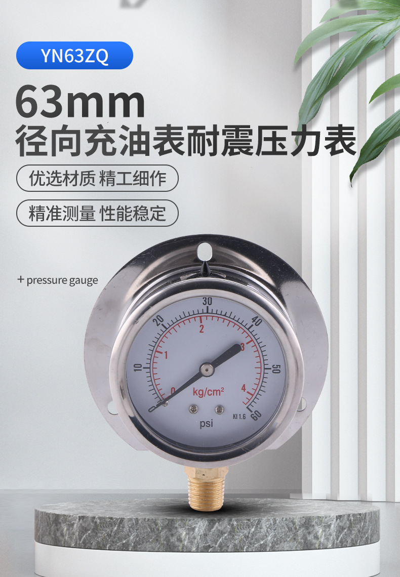 YN63ZQ 63mm Radial Oil-Filled Pressure Gauge (0-4kg/cm2 / 0-60psi) with Stainless Steel Case, Copper Connector, 4-Inch Rear Flange Mount HVAC
