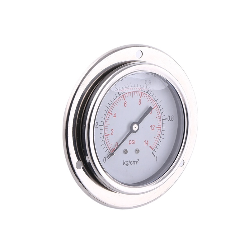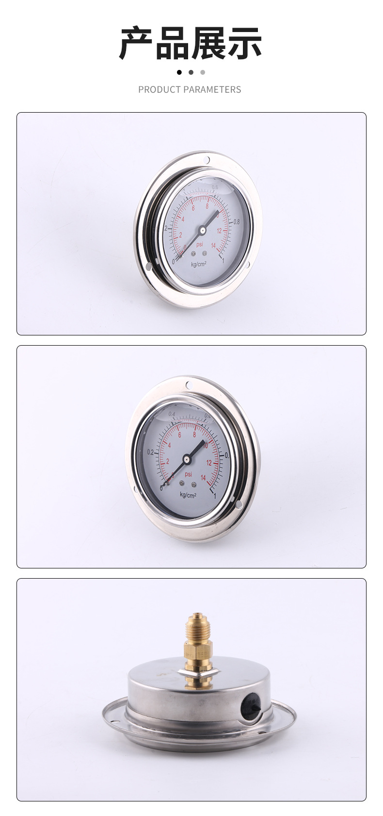 YN75ZC 75mm Axial Oil-Filled Pressure Gauge, Shock Resistant Stainless Steel Shell, Copper Connector with 3-Hole Front Flange for HVAC Systems Replaces YN75ZC