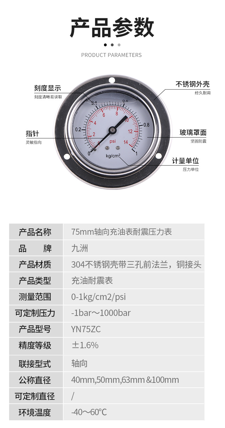 - What You Get: Includes one 75mm axial oil-filled shock-resistant pressure gauge (model YN75ZC) with stainless steel shell and copper connector, ensuring a direct and effective replacement.