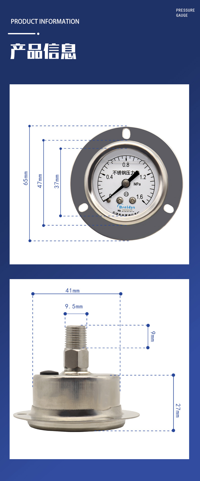 - Key Specs & Performance: Features a clear 40mm dial with a 0-1.6MPa (0-16 bar) measurement range and 2.5 accuracy class. The axial connection with PT1/8 thread ensures straightforward integration, providing precise readings for critical operations.