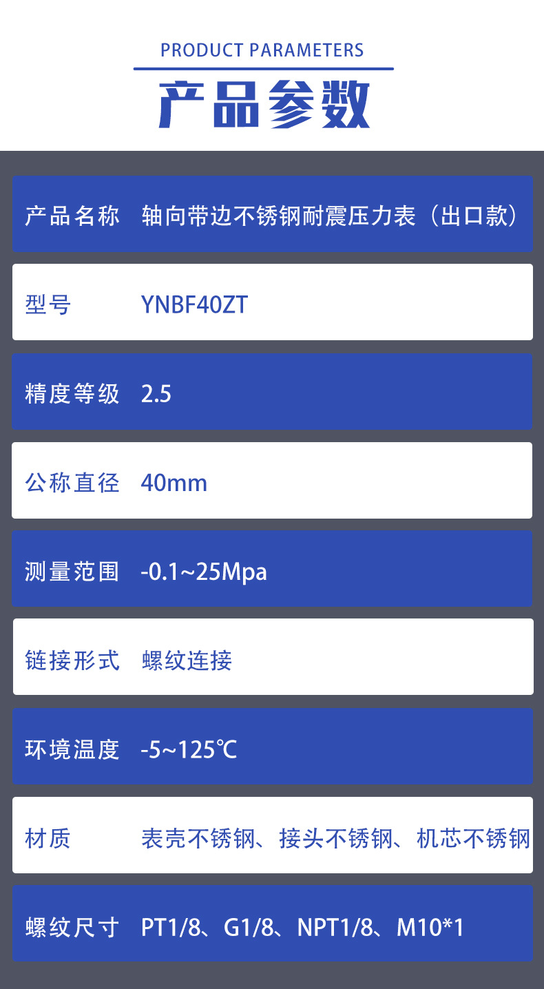 - What You Get: Includes one YNBF40ZT stainless steel pressure gauge. This high-precision instrument is quality assured, supporting various applications that require accurate pressure measurement, backed by reliable manufacturing.