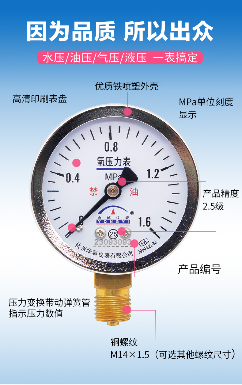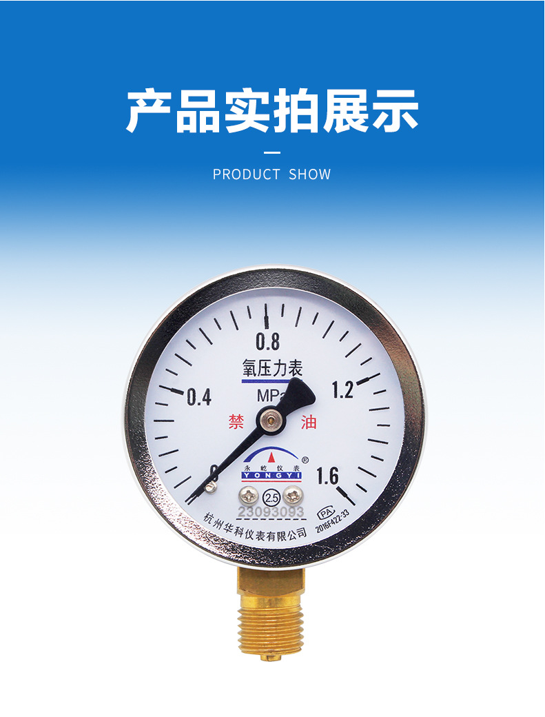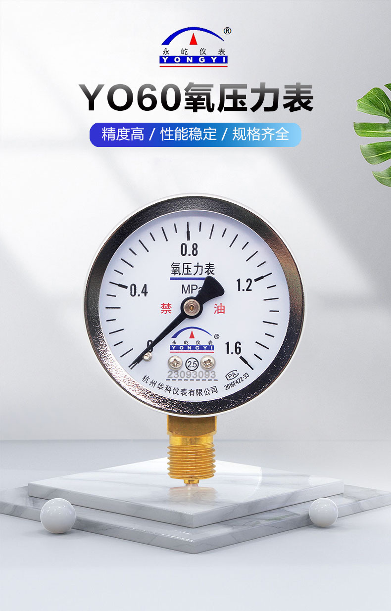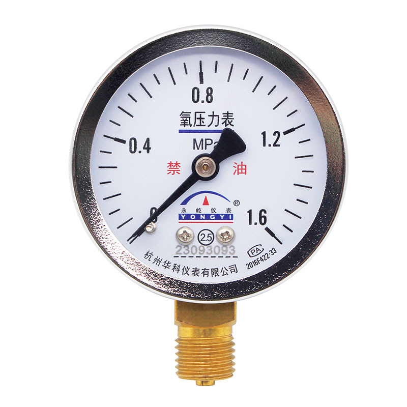 YONGYI YO60 Radial Oxygen Pressure Gauge (0-1.6MPa, 2.5 Accuracy) for Water, Hydraulic, Oil and Gas Systems